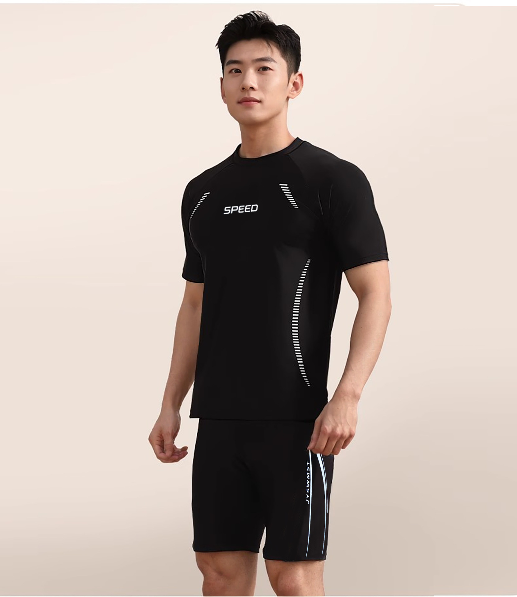 남자 수영복 수영 트렁크 세트 새 소년 10 대 전문 수영 훈련 빠른 건조 반팔 최고 수영복