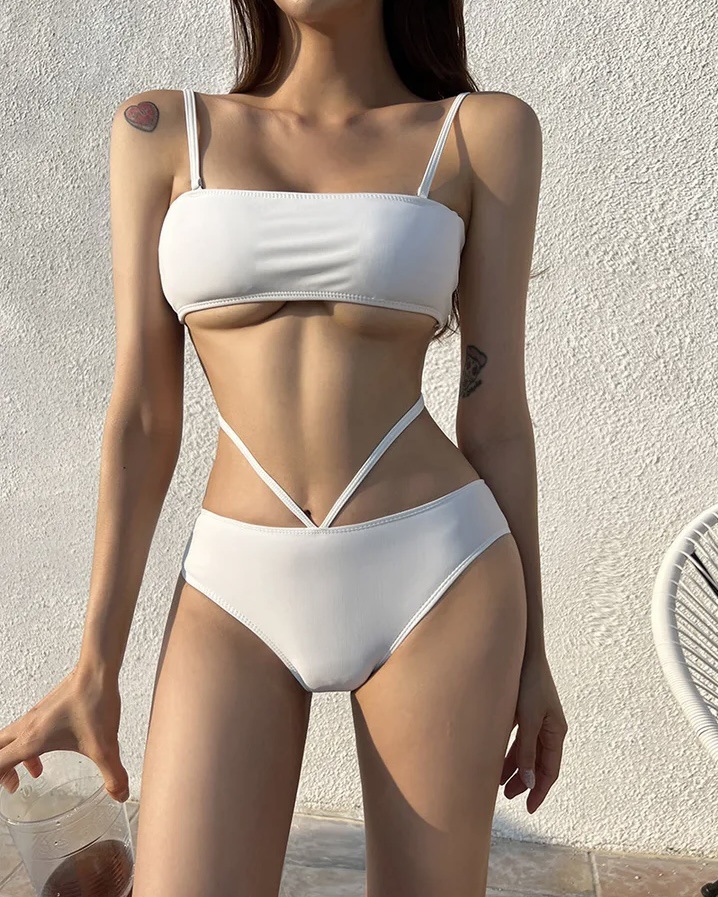 2024 유럽과 미국의 섹시한 3 점 비키니 수영복 여성의 큰 가슴 노출 스플릿 교수형 목 뜨거운 봄 휴일 수영복스토어 가기