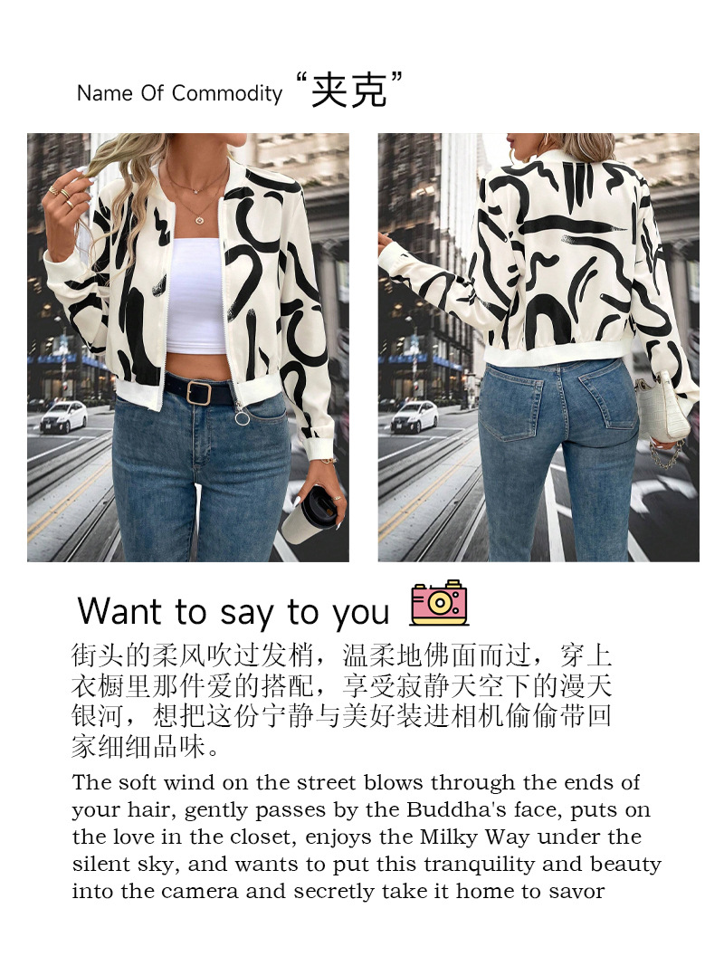 유럽 및 미국 크로스보더 2025 가을 겨울 우아한 여성 패턴 프린트 지퍼 야구 재킷 캐주얼 탑 코트스토어 가기