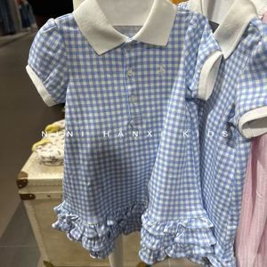 핑크 하우스 아동복 여름 새 여아 스위트 블루 체크 민소매 원피스 아기 소녀 체리 조끼 원피스