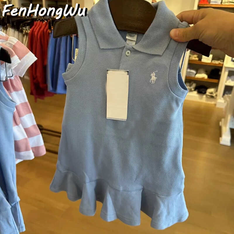 핑크 하우스 아동복 여름 새 여아 스위트 블루 체크 민소매 원피스 아기 소녀 체리 조끼 원피스스토어 가기