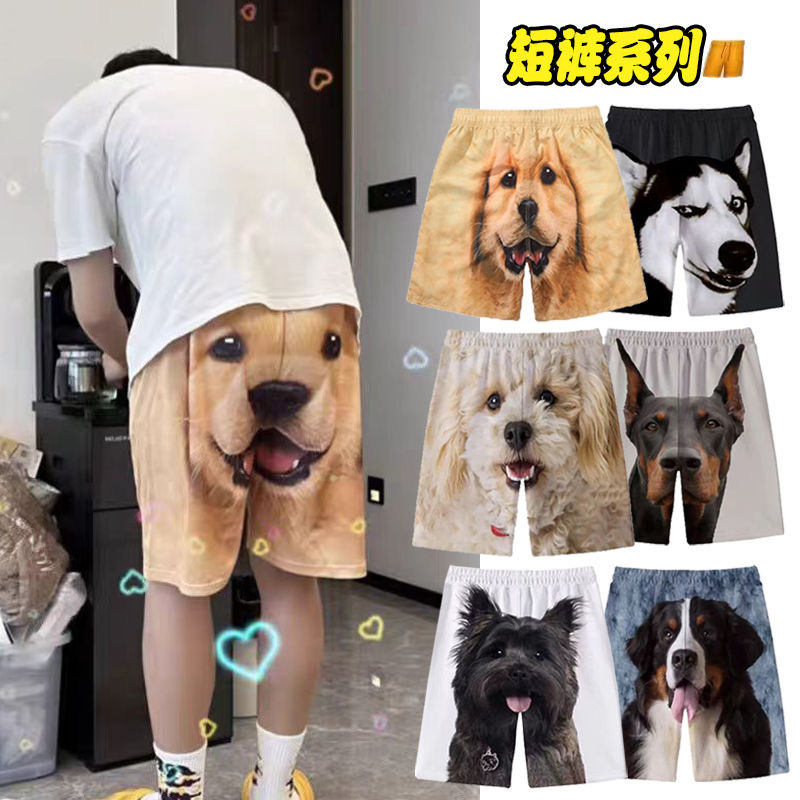 골든 리트리버 반바지 재미 있은 남자 해변 스포츠 캐주얼 바지 크로스 보더 인기 유럽과 미국 패션 커플 인쇄 개 머리 반바지스토어 가기