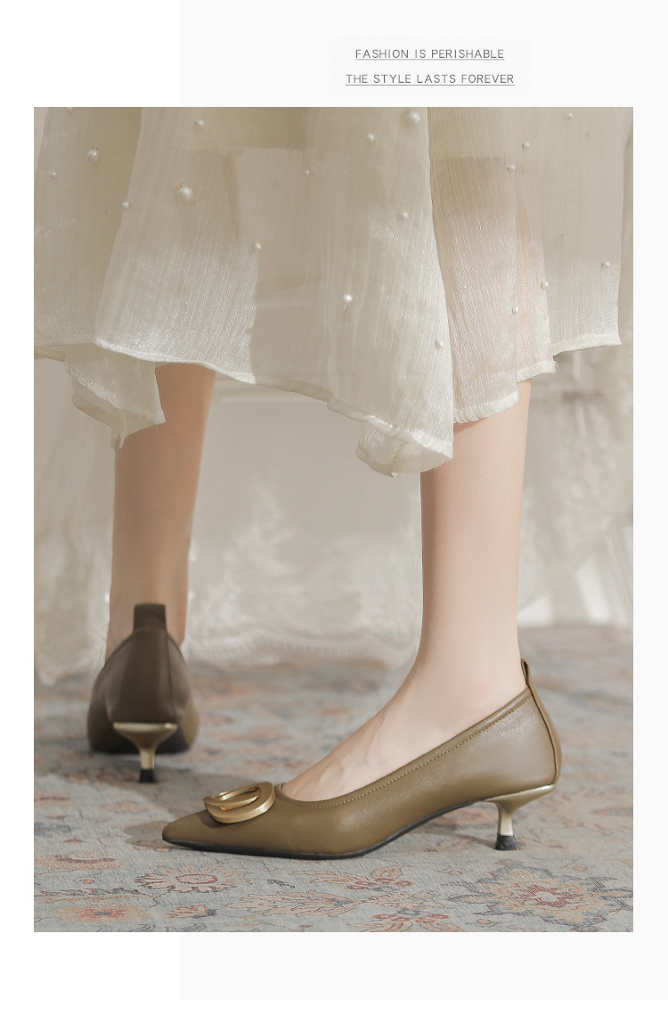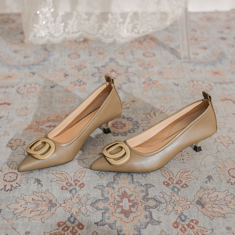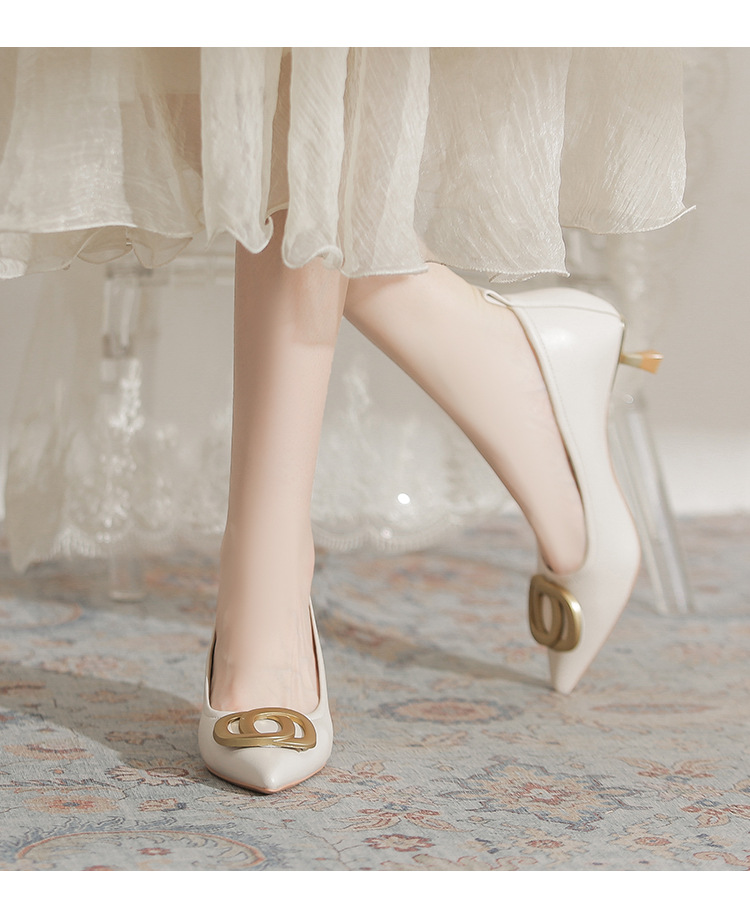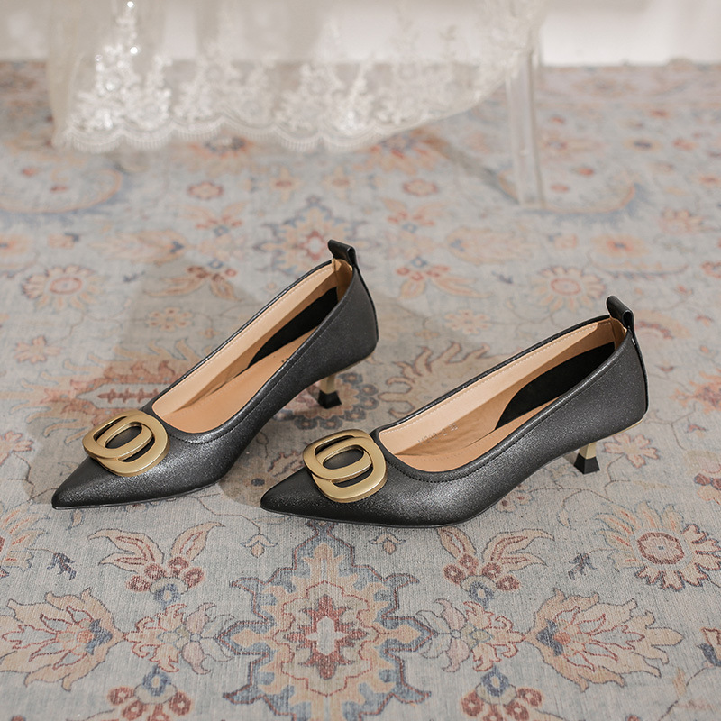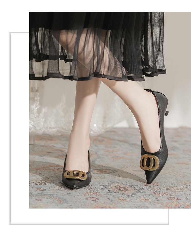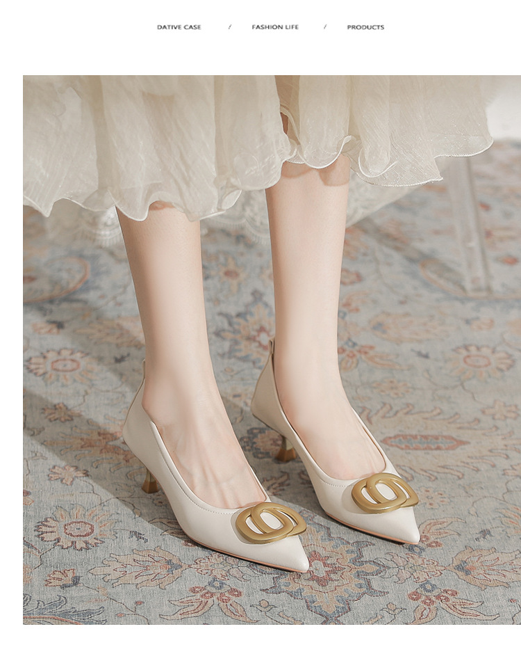 뾰족한 앞코 얇은 굽 하이힐 출퇴근용 우아한 디자인 프렌치 스타일 메탈 버클 2025년 봄 신상 여성 패션 슈즈스토어 가기
