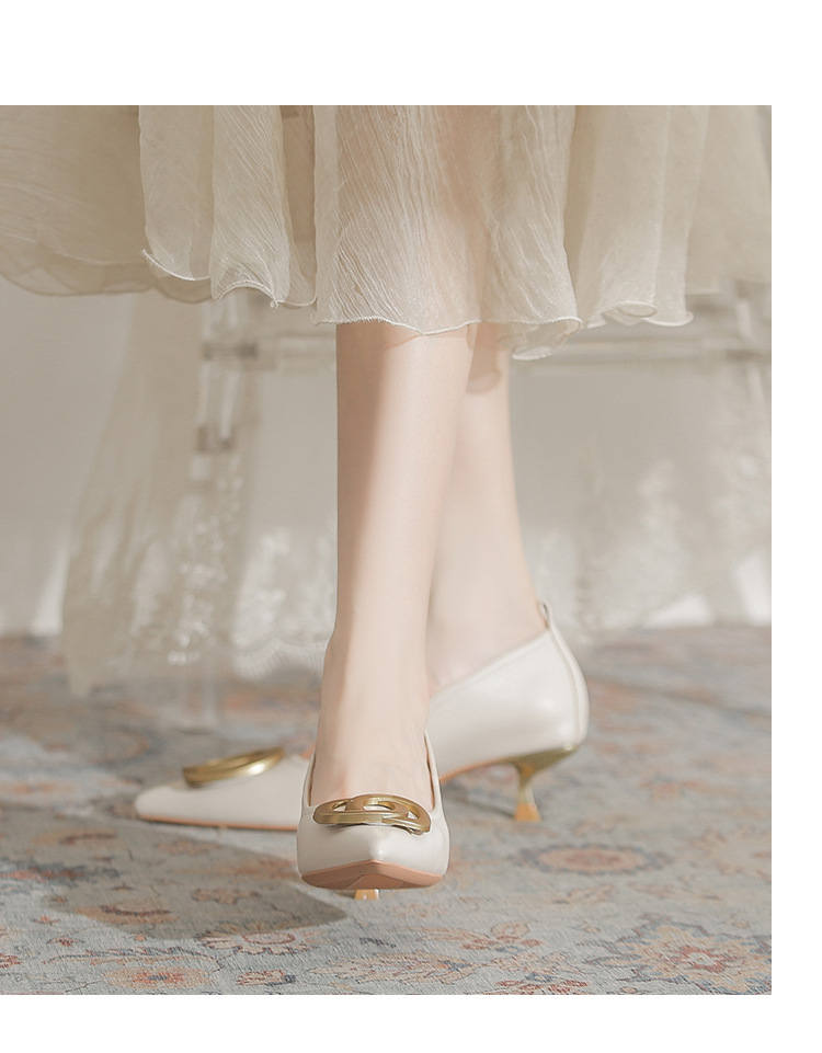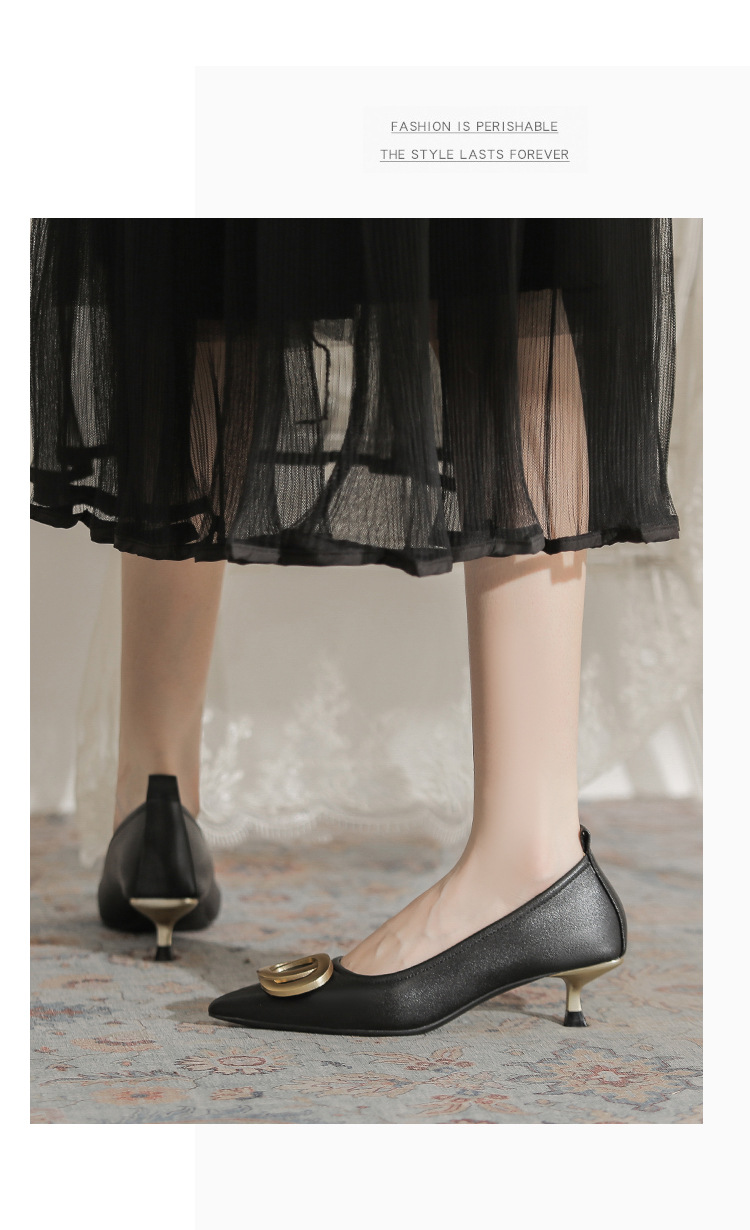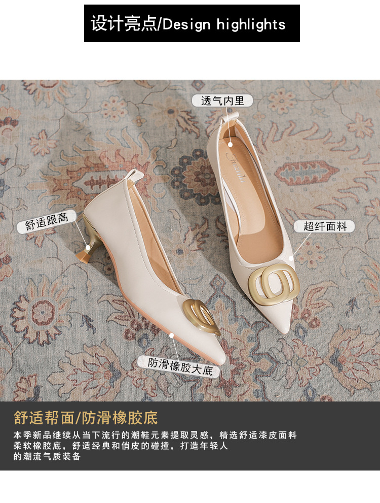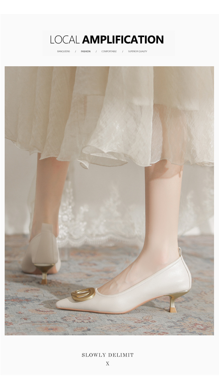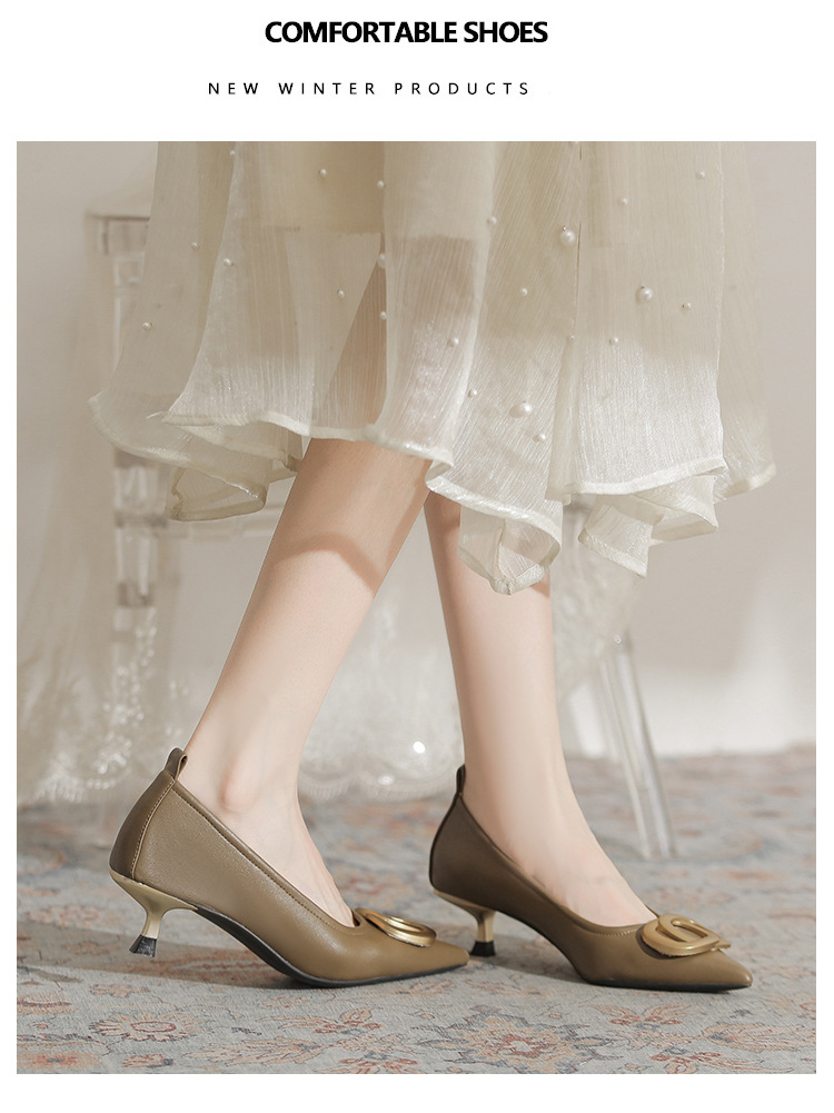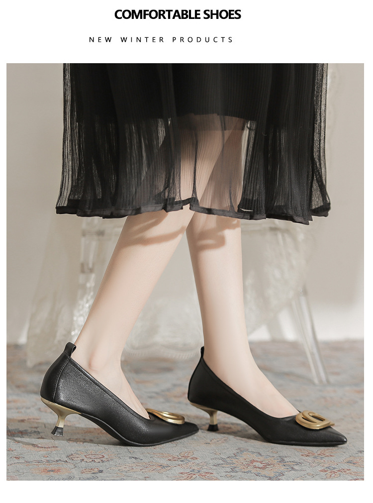 뾰족한 앞코 얇은 굽 하이힐 출퇴근용 우아한 디자인 프렌치 스타일 메탈 버클 2025년 봄 신상 여성 패션 슈즈스토어 가기