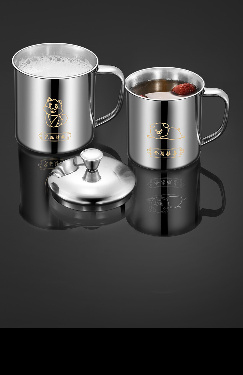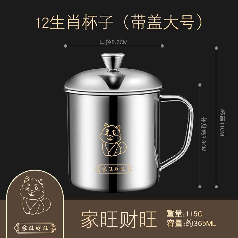 12 조디악 스테인레스 스틸 컵 304 식품 학년 유치원 뚜껑 드롭 방지 귀여운 어린이 워터 컵 가정용 입 컵