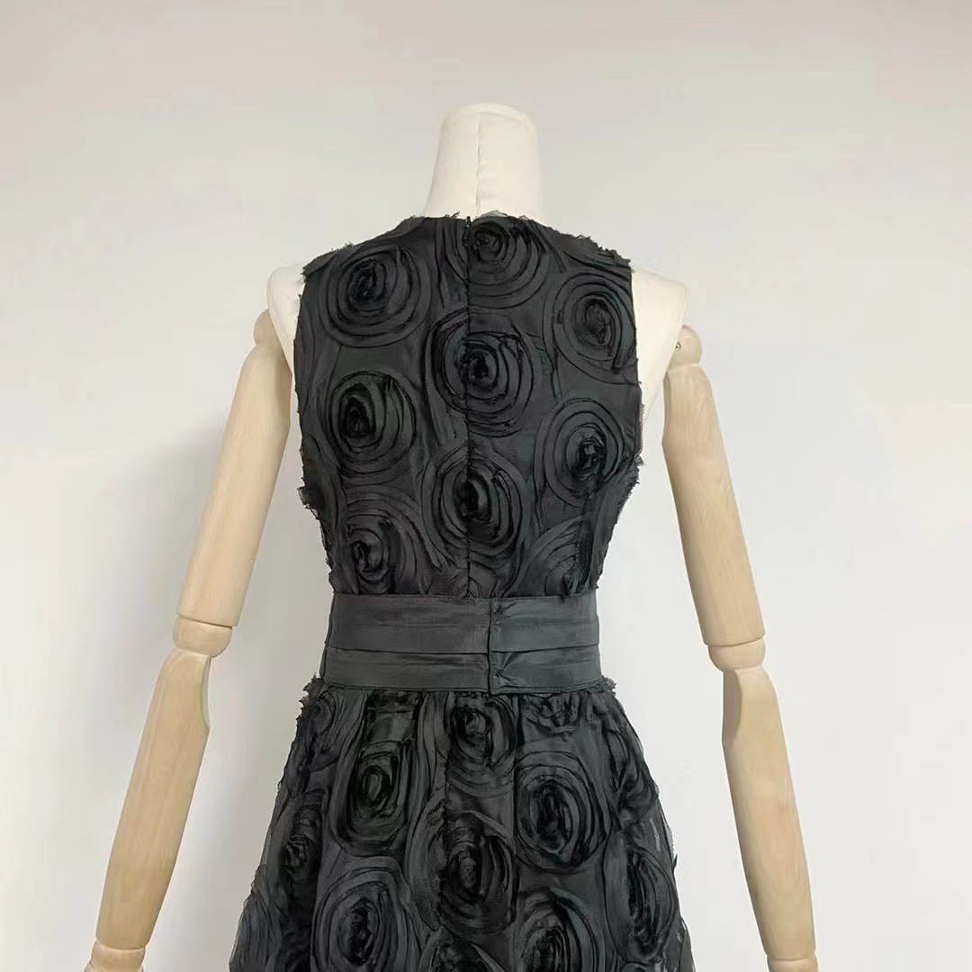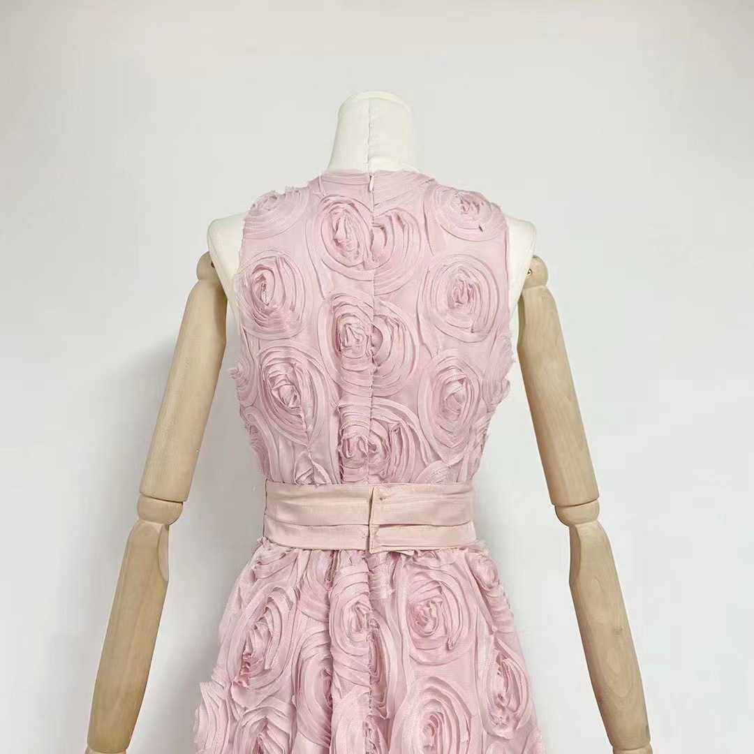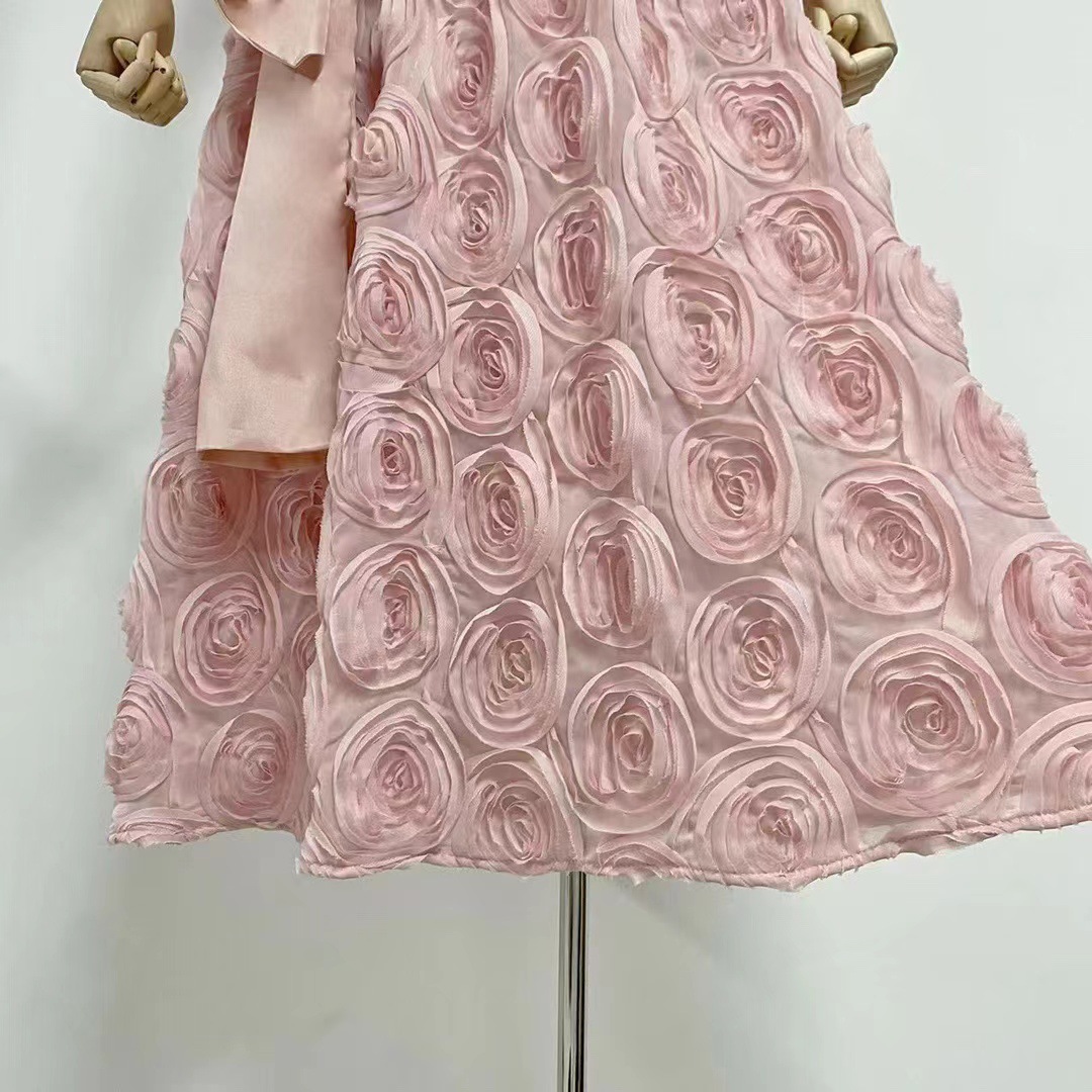 유럽과 미국의 대외 무역 국경 2024 여름 새로운 둥근 목 민소매 3 차원 꽃 벨트 허리 긴 원피스 여성스토어 가기