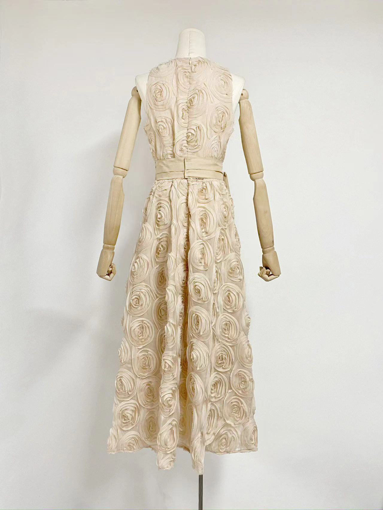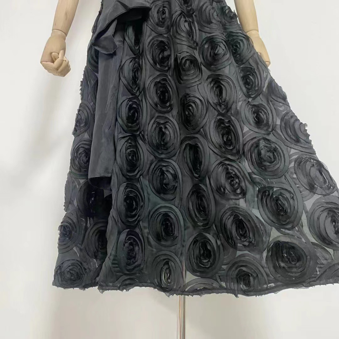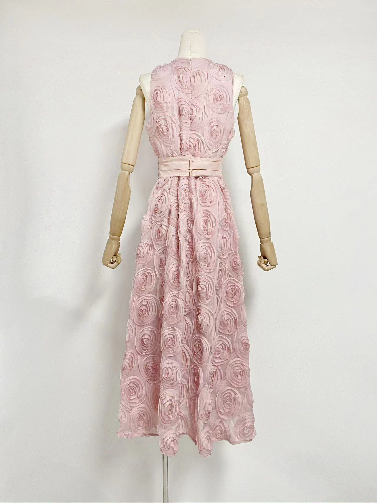유럽과 미국의 대외 무역 국경 2024 여름 새로운 둥근 목 민소매 3 차원 꽃 벨트 허리 긴 원피스 여성스토어 가기