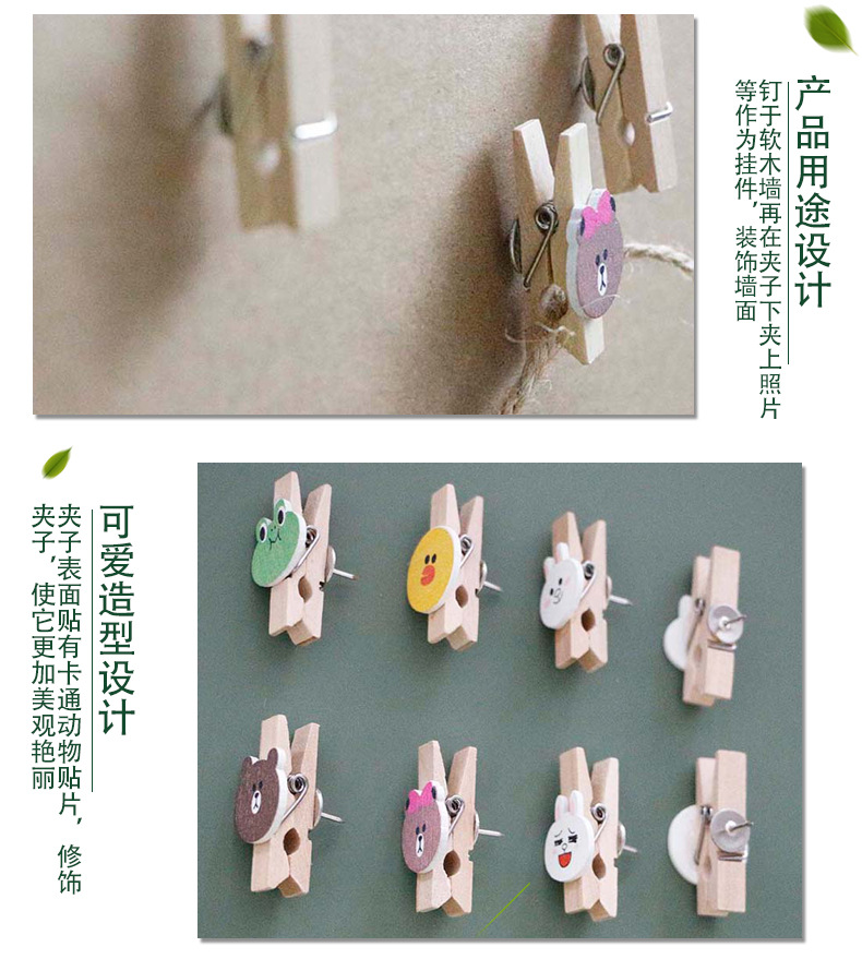 도매 창조적 인 푸시 핀 클립 사진 클립 코르크 보드 나무 네일 클립 귀여운 DIY 장식 네일 클립스토어 가기
