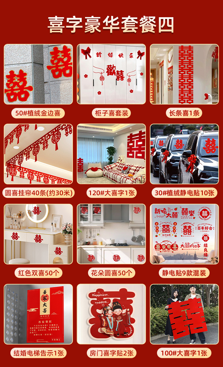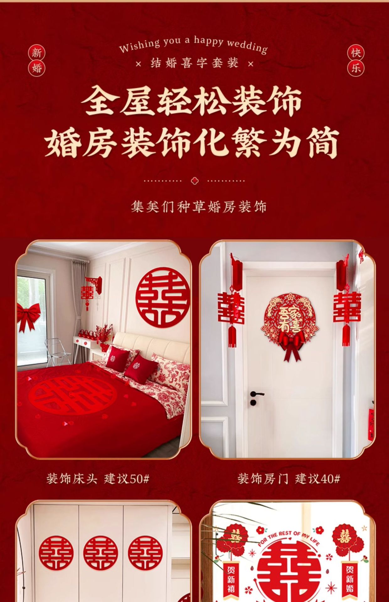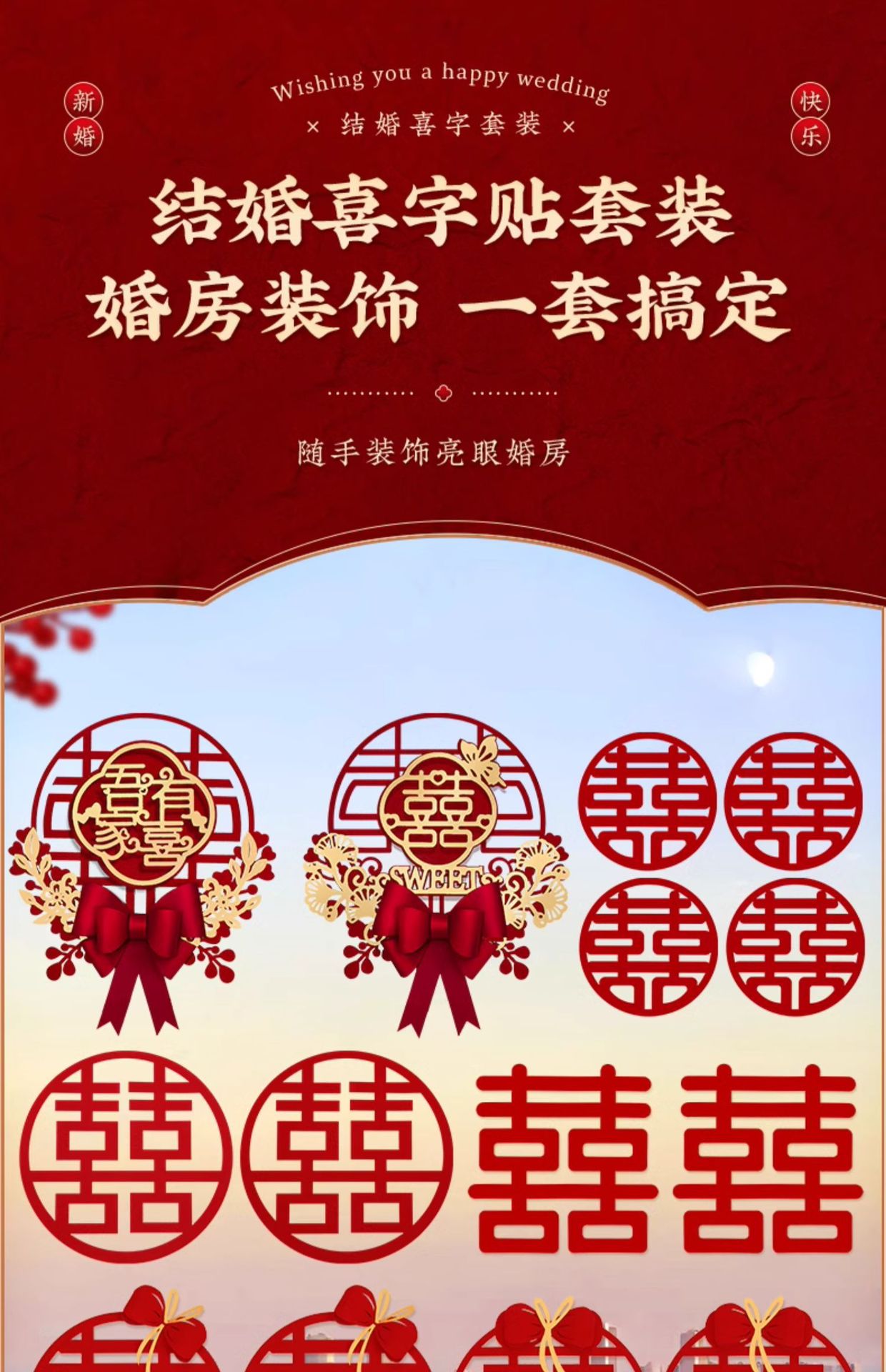 웨딩 룸 레이아웃 웨딩 캐릭터 스티커 웨딩 특별 장식 세트 창 스타일 캐릭터 스티커 문 크기 정전기 스티커 쉐이크스토어 가기