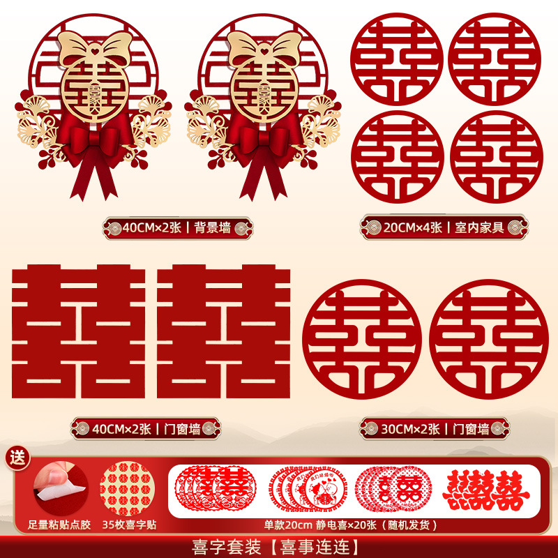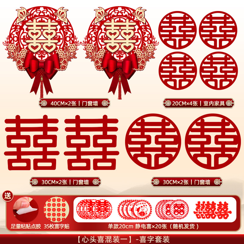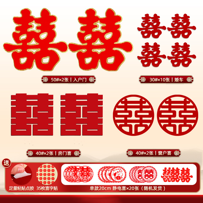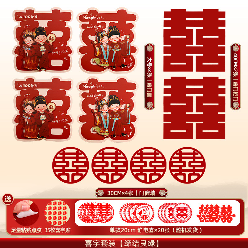 웨딩 룸 레이아웃 웨딩 캐릭터 스티커 웨딩 특별 장식 세트 창 스타일 캐릭터 스티커 문 크기 정전기 스티커 쉐이크