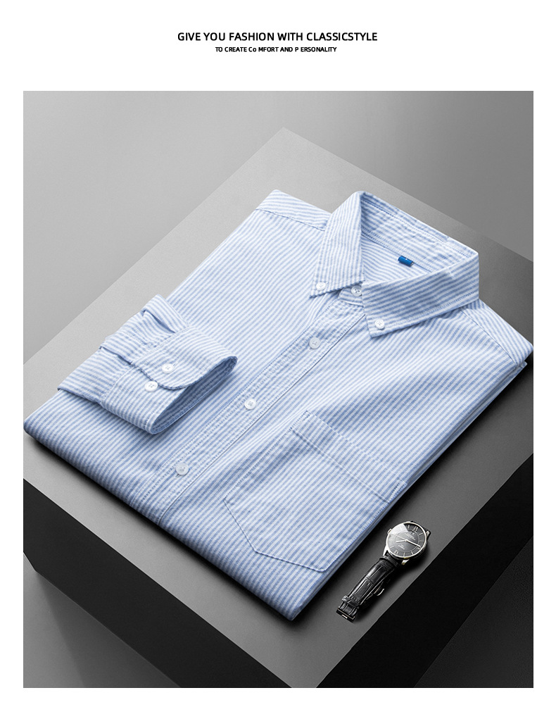 순수 코튼 옥스포드 섬유 하이 엔드 셔츠 긴팔 남성 캐주얼 바닥 스트라이프 비철 기질 셔츠 셔츠 재킷스토어 가기