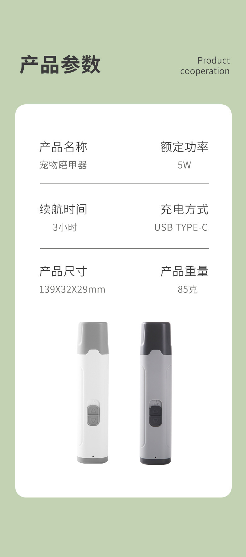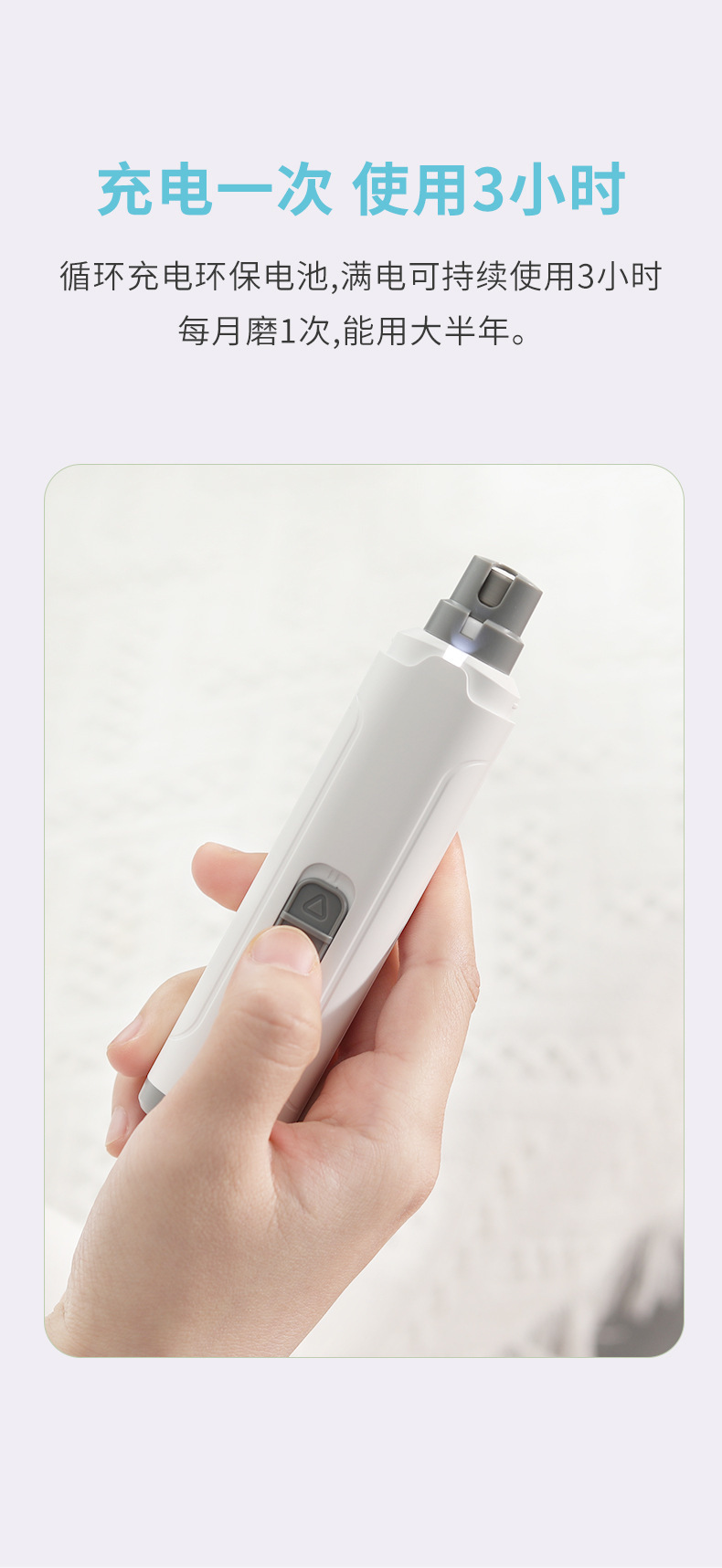 애완 동물 네일 그라인더 LED 조명 2 단 조정 낮은 충격 교체 가능한 연삭 헤드 USB 빠른 충전 고양이와 개 보편적 인 네일 트리머