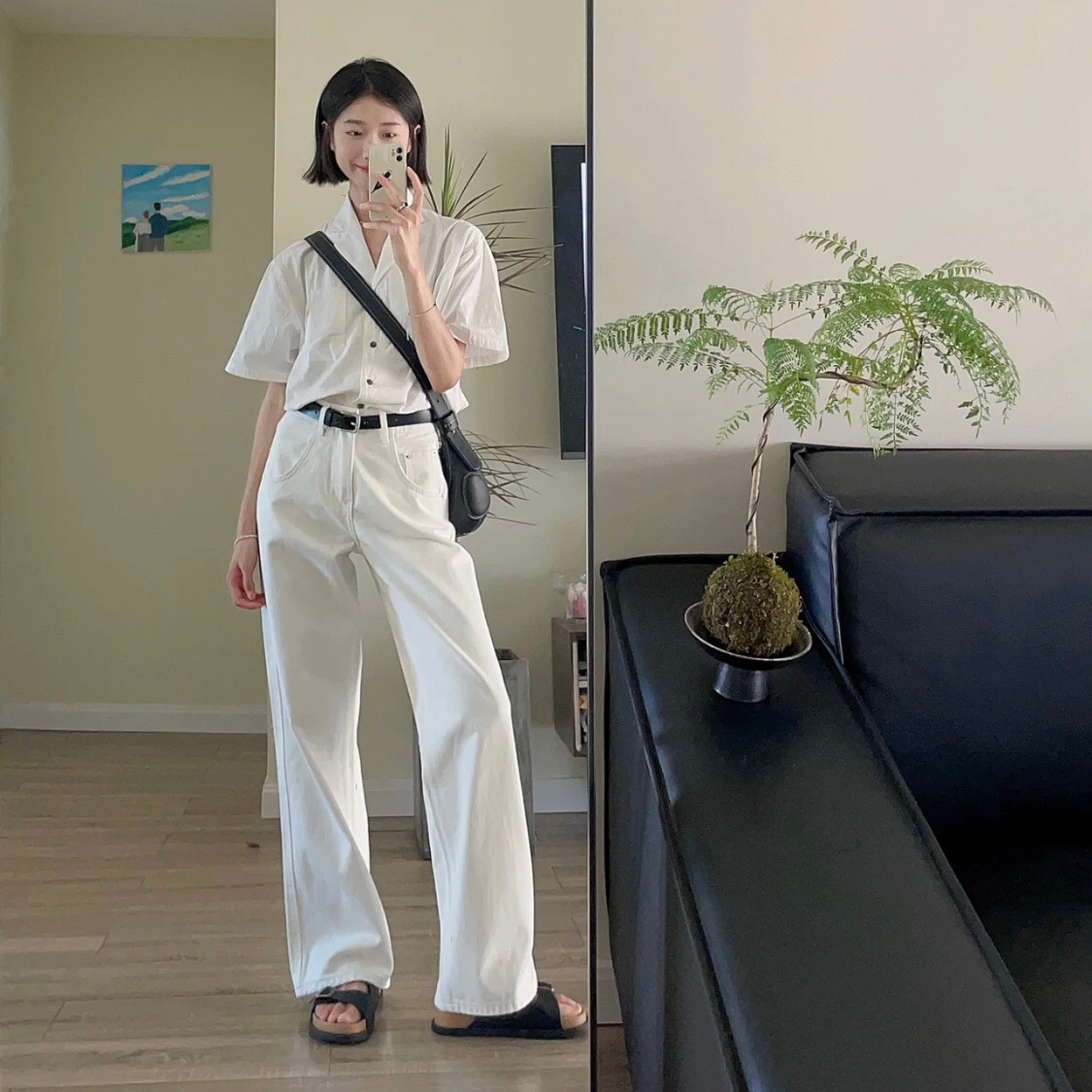 여성용 화이트 스트레이트 청바지 2024 초가을 새로운 스타일 하이 웨이스트 슬리밍 플러스 벨벳 두꺼운 와이드 레그 팬츠스토어 가기