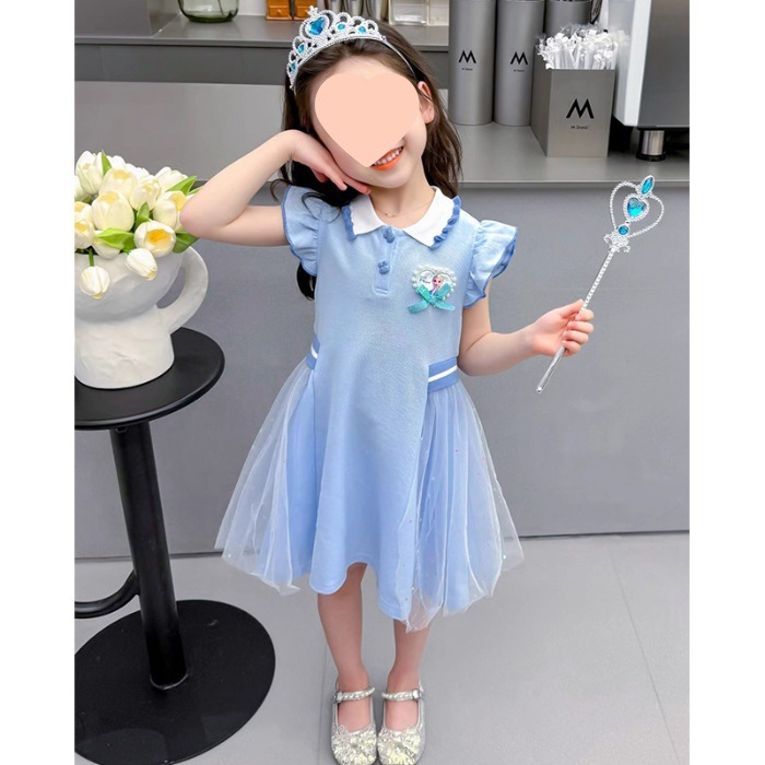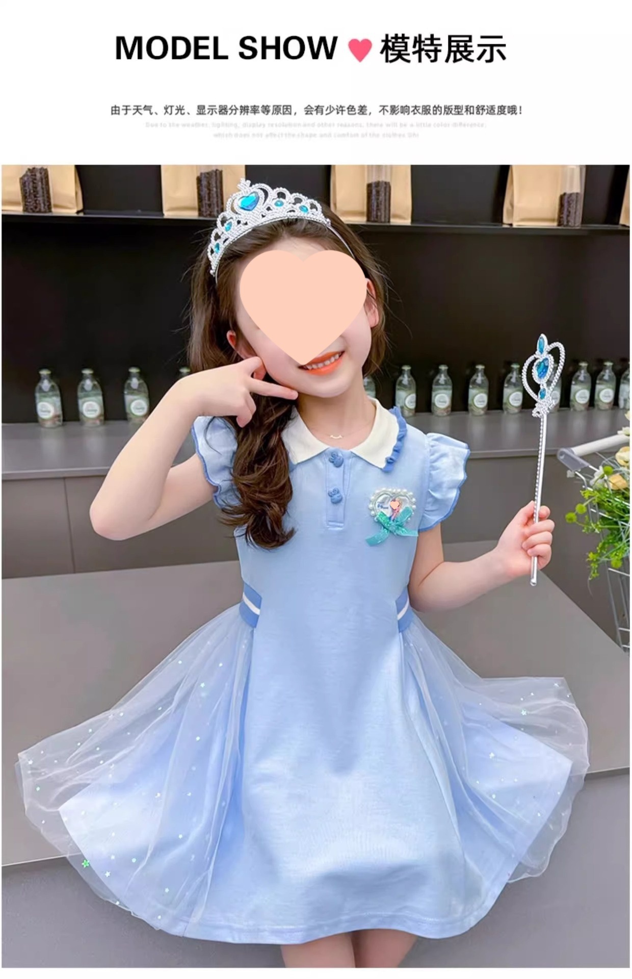 인터넷 축하 소녀의 한국 스타일 패션 캐주얼 옷깃 원피스 어린이 여름 새로운 서양 스타일 유행 만화 공주 원피스