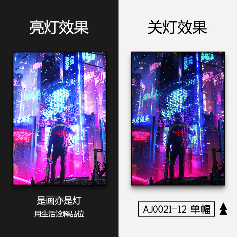 전자 스포츠 호텔 객실 장식 그림 인터넷 카페 바 벽 사이버 펑크 분위기 네온 LED 빛나는 교수형 그림스토어 가기