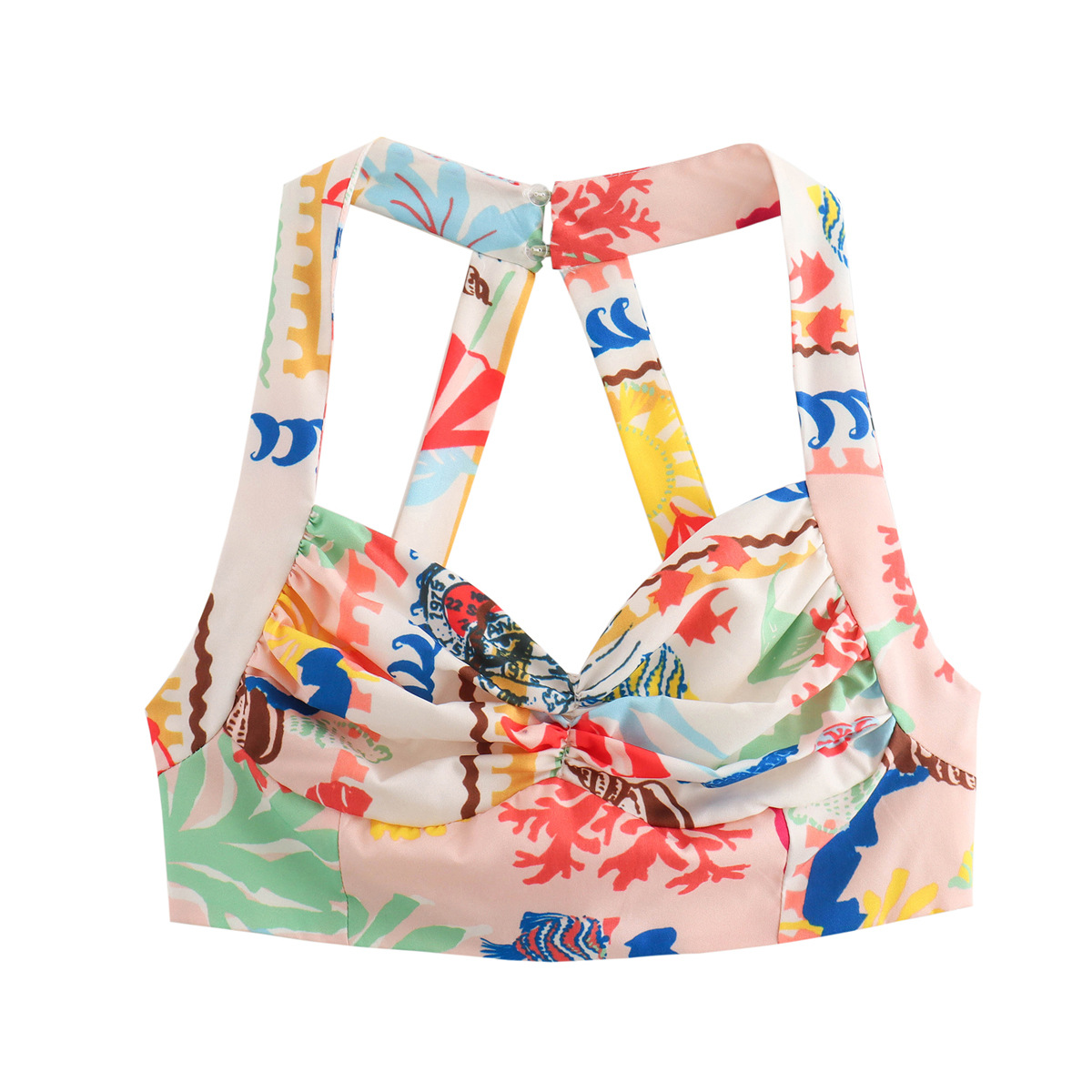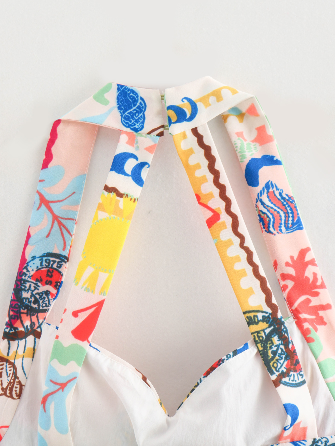 국경 간 AliExpress 아마존 대외 무역 도매 유럽과 미국 여성의 여름 인쇄 패션 작은 튜브 가슴 오버스커트 세트