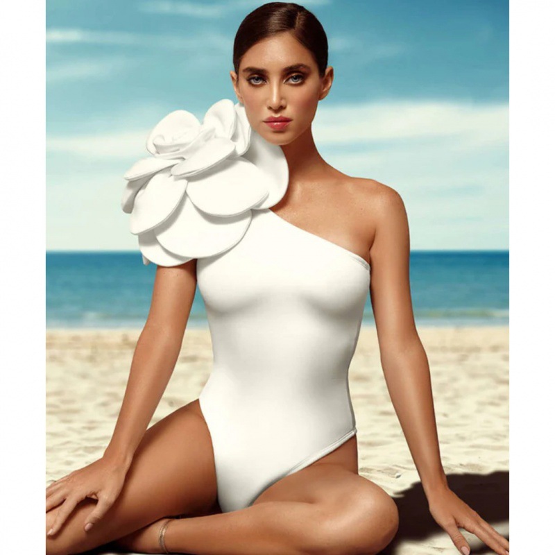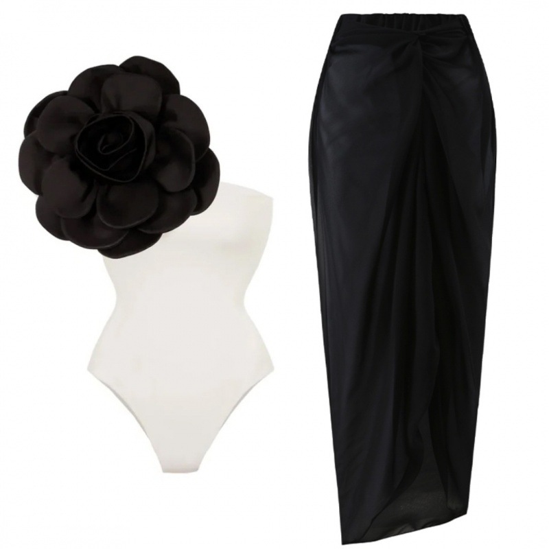 2024 유럽과 미국의 새로운 원피스 수영복 3D 흰색 입체 큰 꽃 장식 단색 섹시한 원피스 수영복