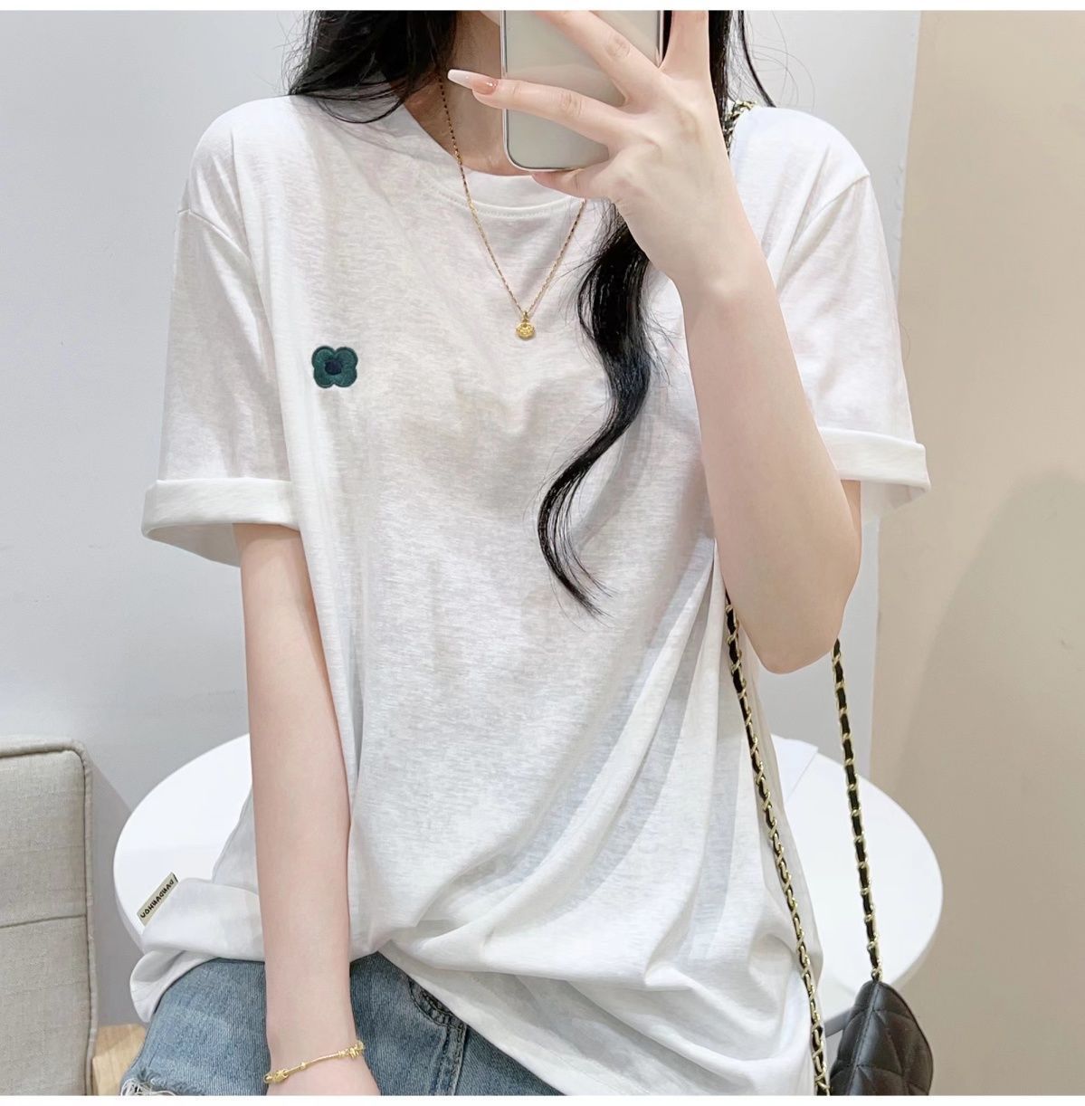 얇은 단순 자수 눈송이 코튼 반팔 티셔츠 여성 여름 새로운 한국식 느슨한 슬리밍 올매치 서양식 탑스토어 가기