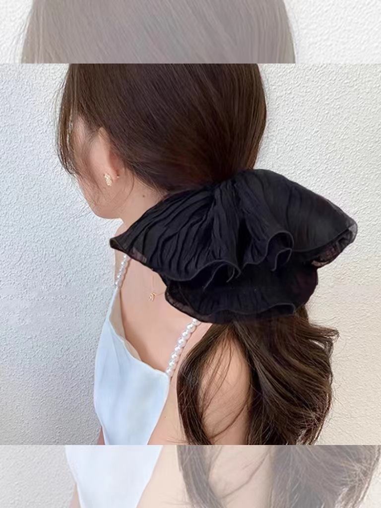 프랑스 복고풍 대형 주름 대형 보울 링 헤어 액세서리 머리 뒷면 하이 엔드 고탄성 올 매치 헤어 타이 헤어 헤드웨어스토어 가기