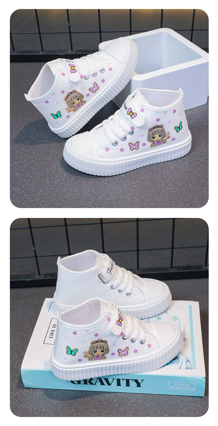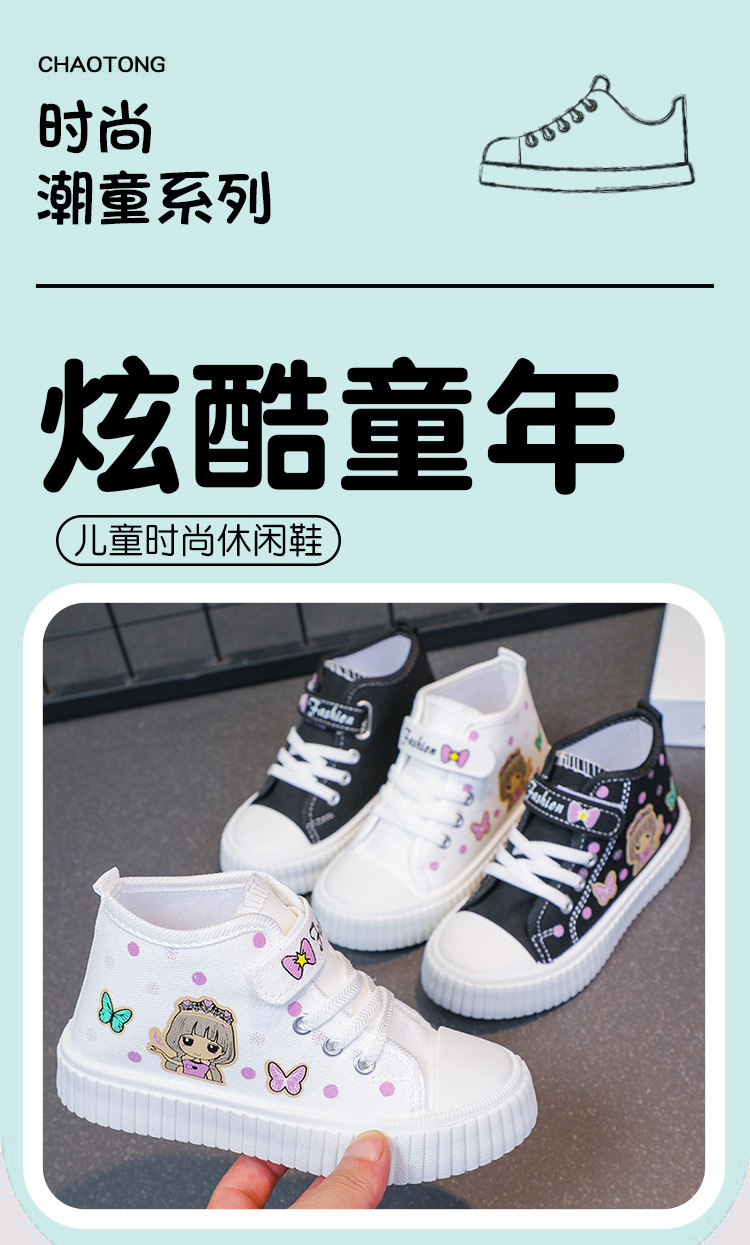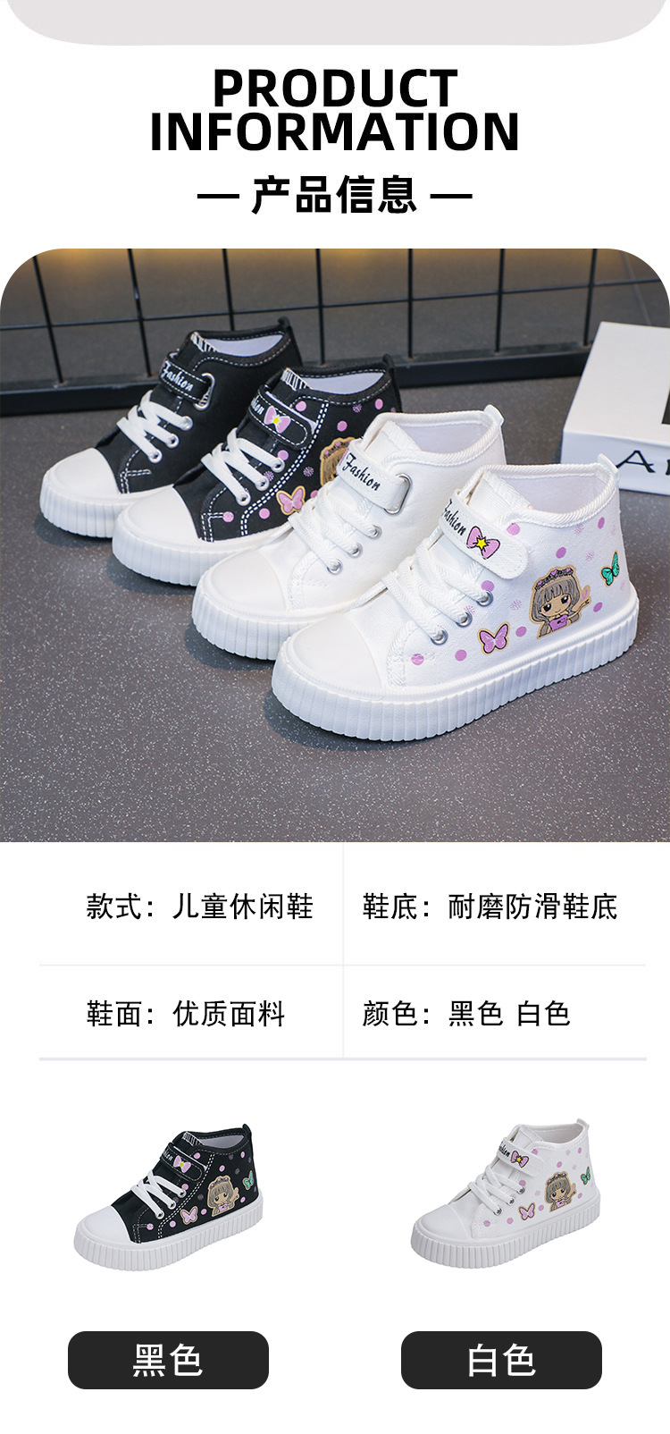소녀 캔버스 신발 헝겊 신발 어린이 2024 미끄럼 방지 새 스타일 흰색 신발 봄과 가을을위한 부드러운 단독 캐주얼 하이 탑 보드 신발스토어 가기