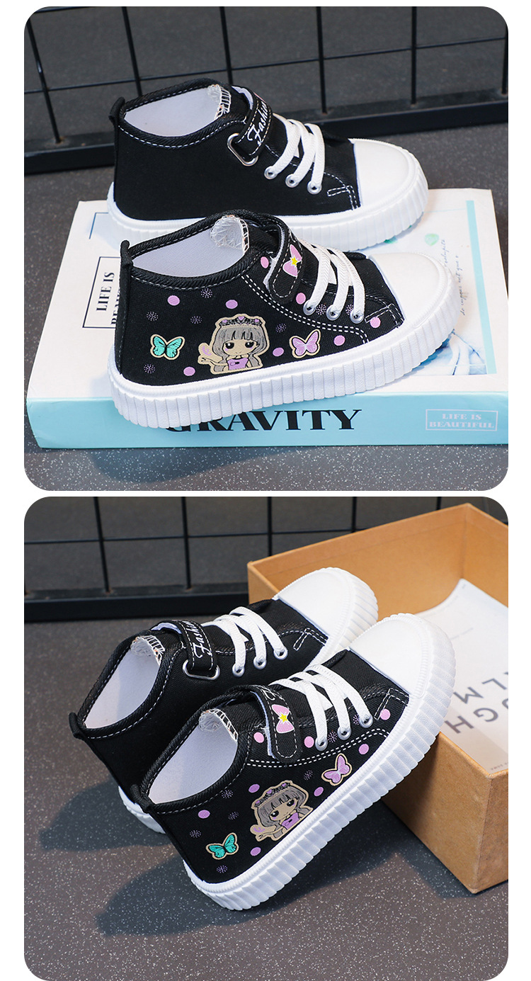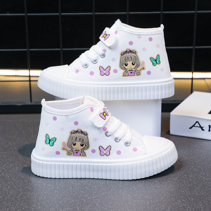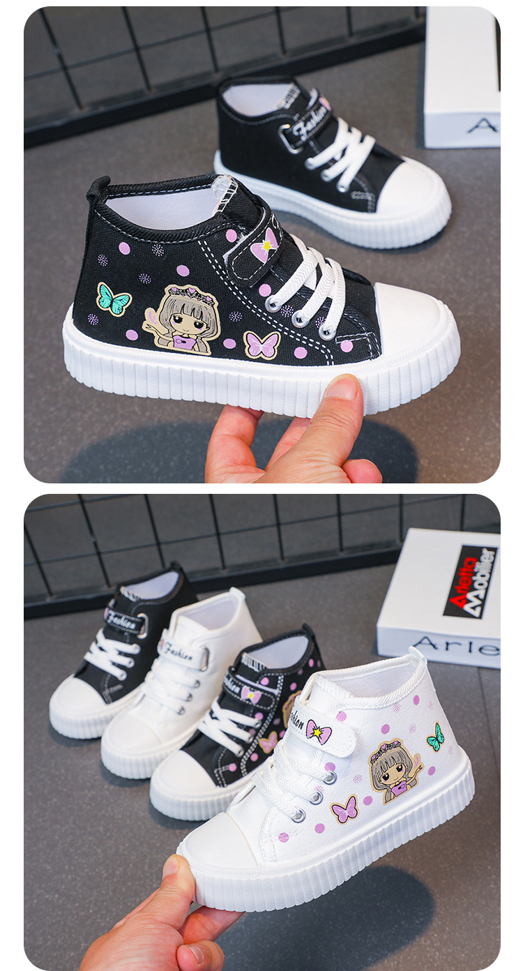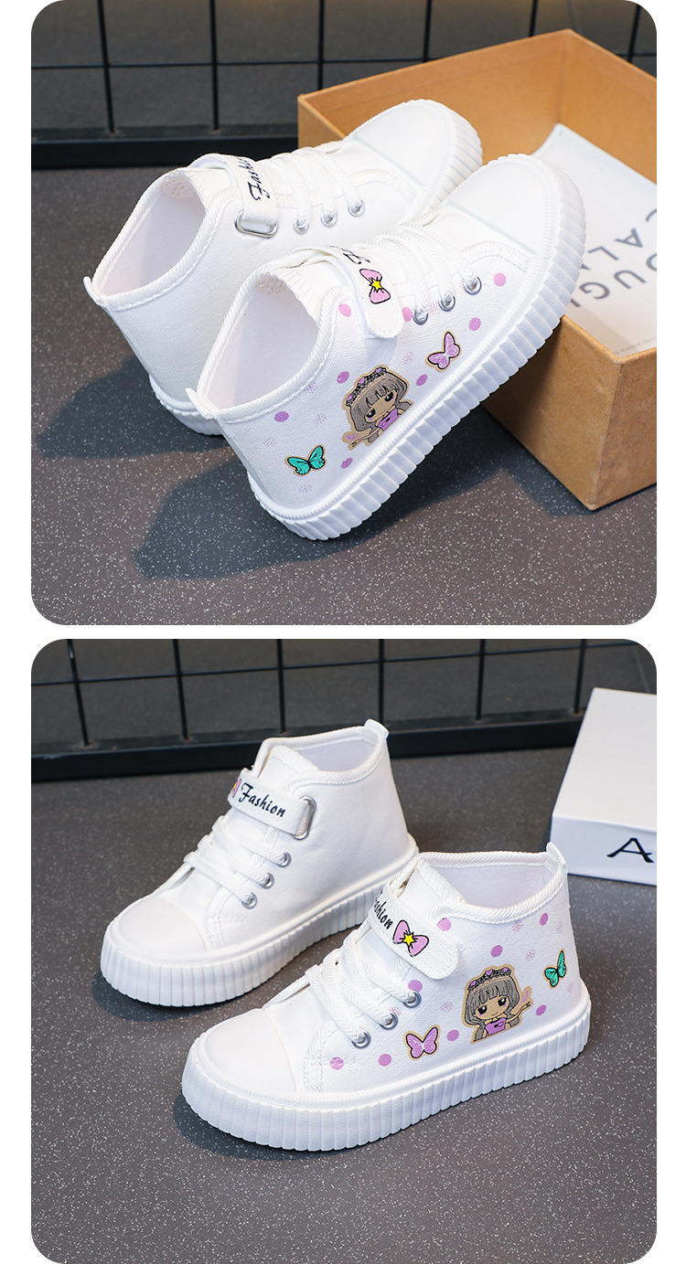 소녀 캔버스 신발 헝겊 신발 어린이 2024 미끄럼 방지 새 스타일 흰색 신발 봄과 가을을위한 부드러운 단독 캐주얼 하이 탑 보드 신발스토어 가기