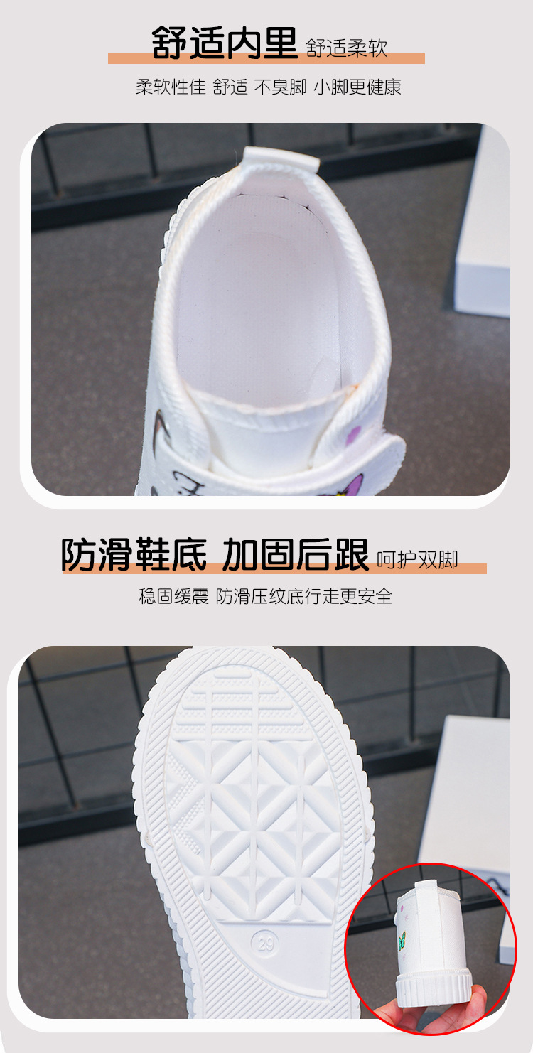 소녀 캔버스 신발 헝겊 신발 어린이 2024 미끄럼 방지 새 스타일 흰색 신발 봄과 가을을위한 부드러운 단독 캐주얼 하이 탑 보드 신발
