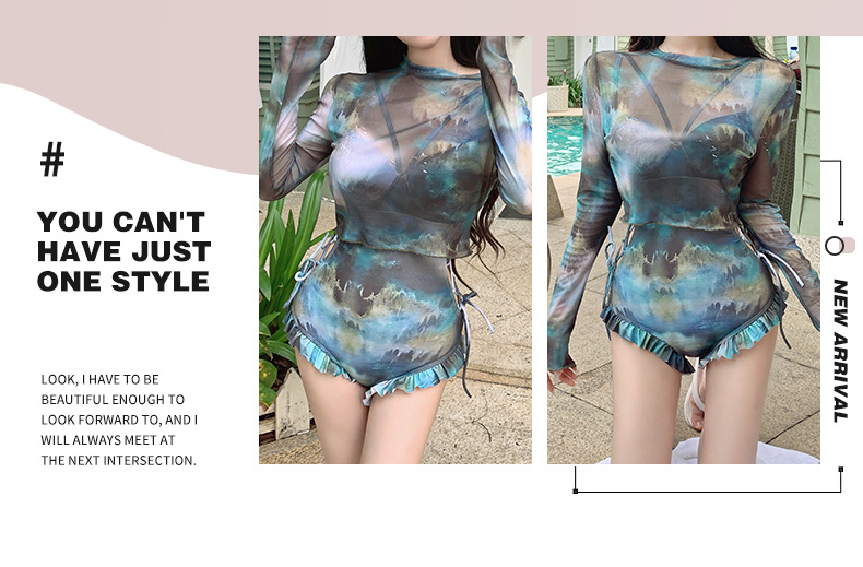 2024 새로운 비키니 보수 긴팔 블라우스 세트 여성 살로 덮인 슬리밍 온천 휴가 순수한 욕망 수영복스토어 가기