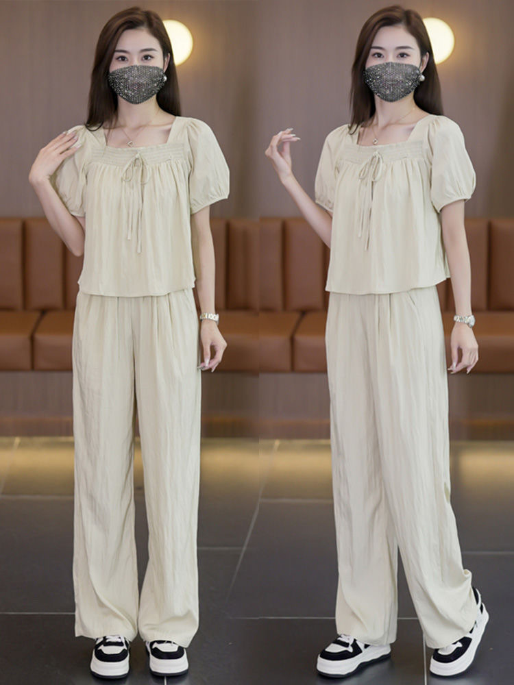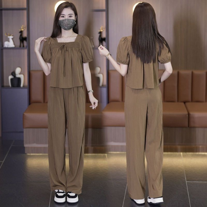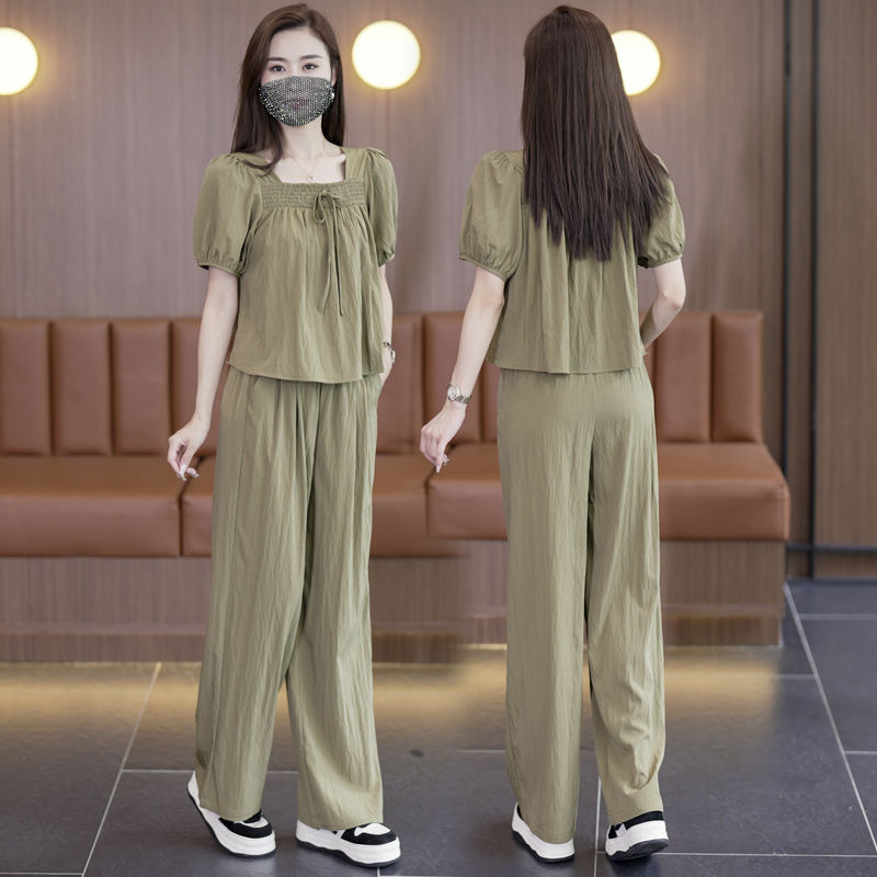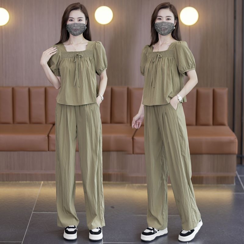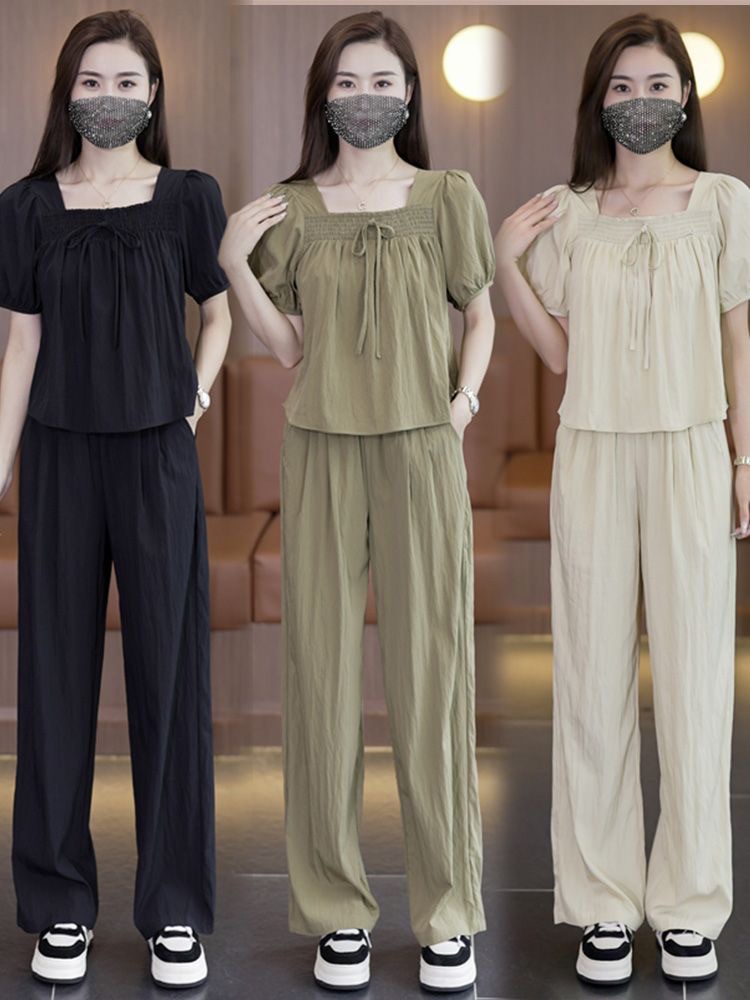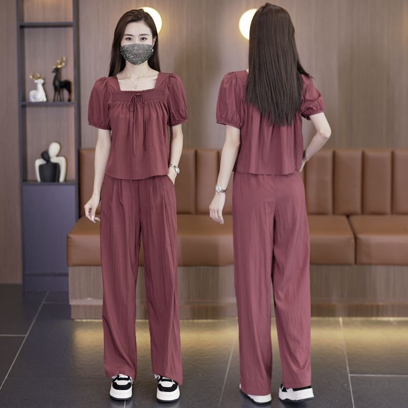 유명 인사 우아한 쉬폰 셔츠 플러스 사이즈 세트 2024 여름 새로운 여신 팬 캐주얼 패션 와이드 레그 바지 투피스 세트스토어 가기