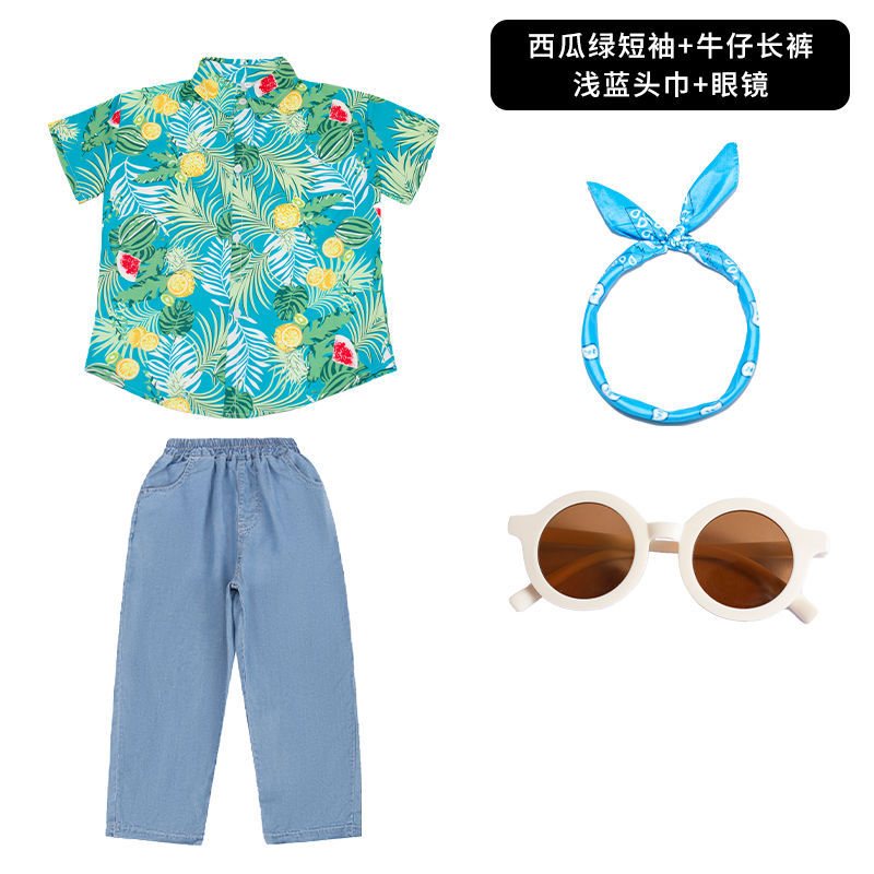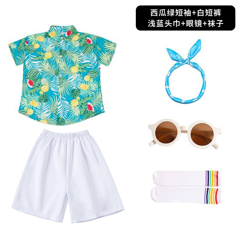 • 수박 녹색 반팔 + 순백색 반바지 + 하늘색 스카프 안경 양말