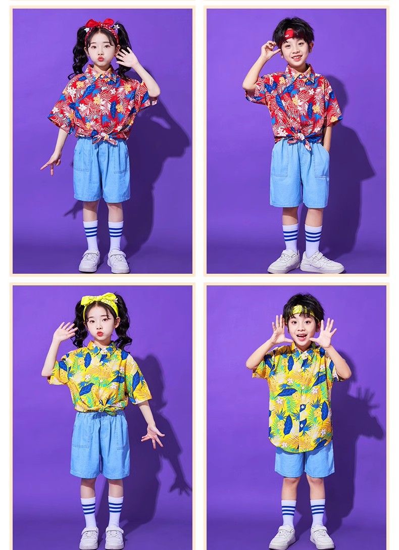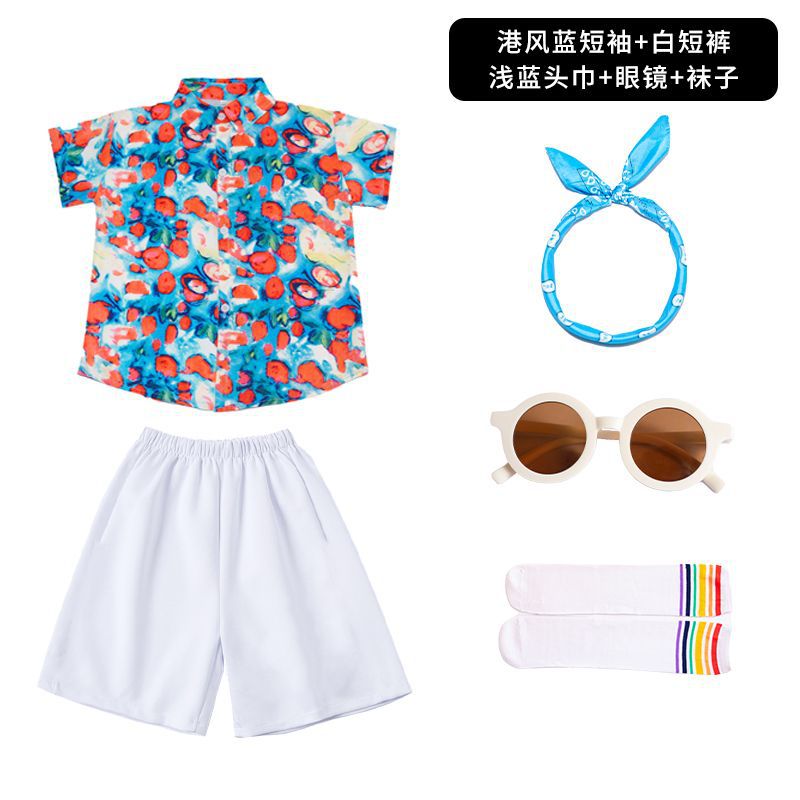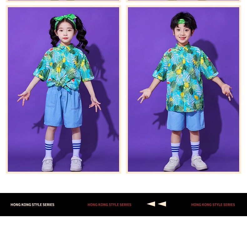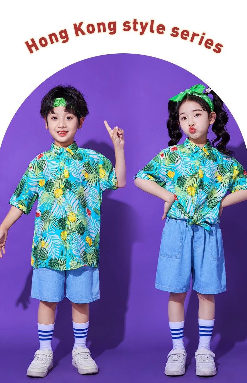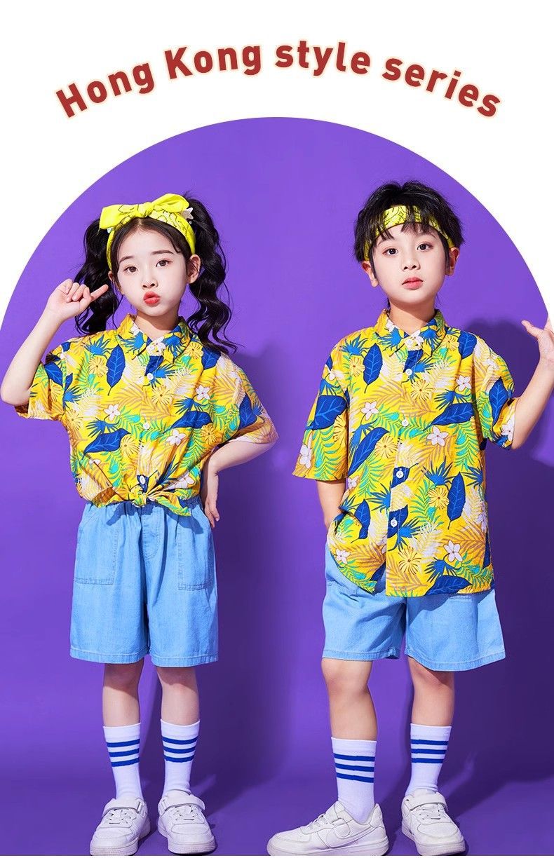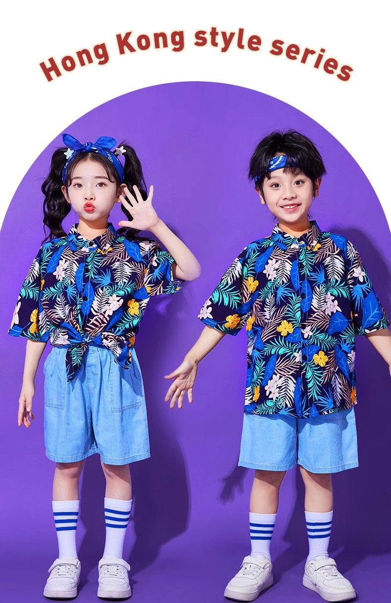 어린이 유치원 홍콩 스타일 공연 댄스 치어 리더 팀 운동 클래스 옷 복고풍 꽃 셔츠 초등학교 학생 게임