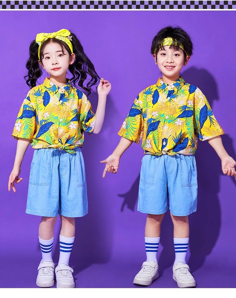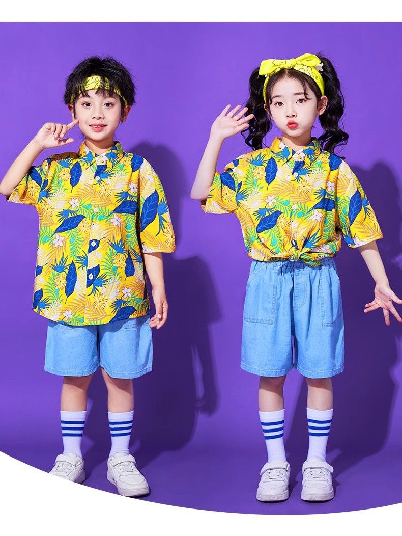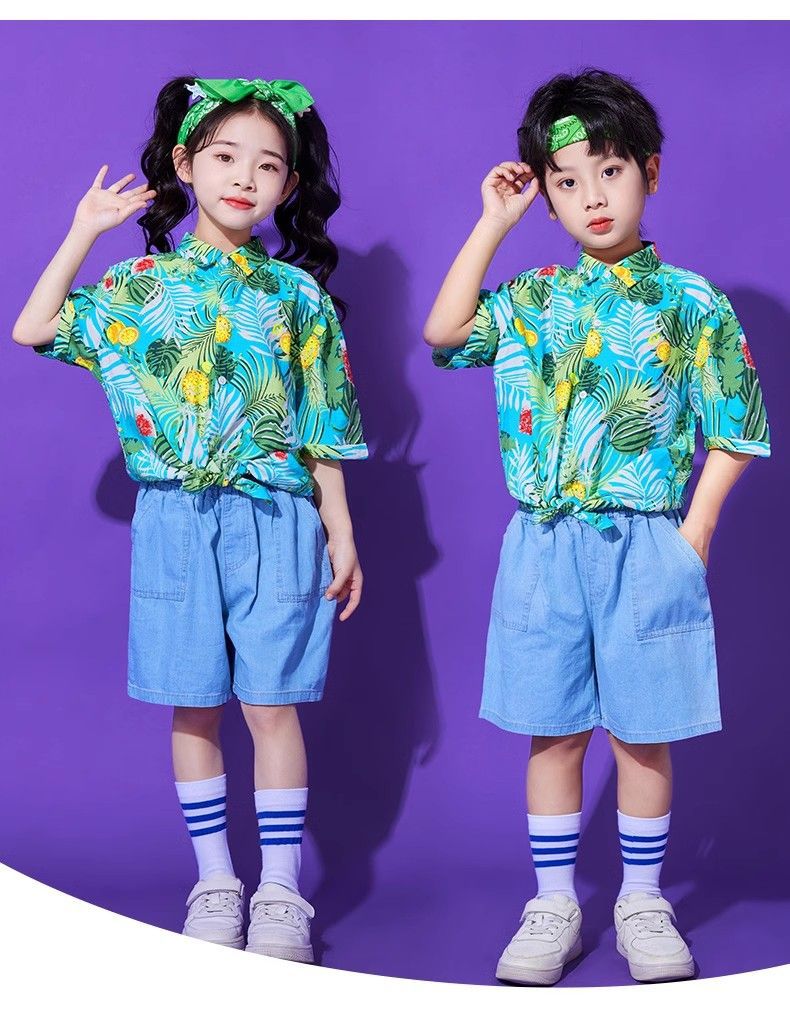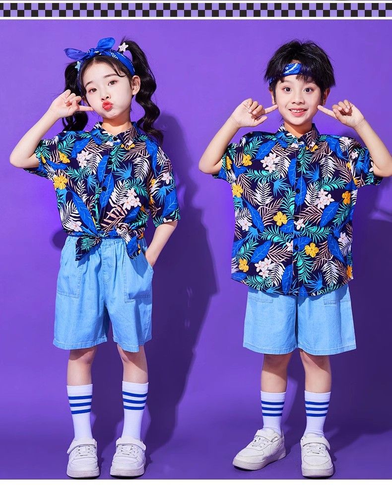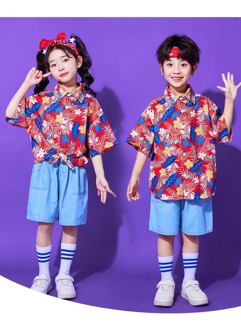 어린이 유치원 홍콩 스타일 공연 댄스 치어 리더 팀 운동 클래스 옷 복고풍 꽃 셔츠 초등학교 학생 게임