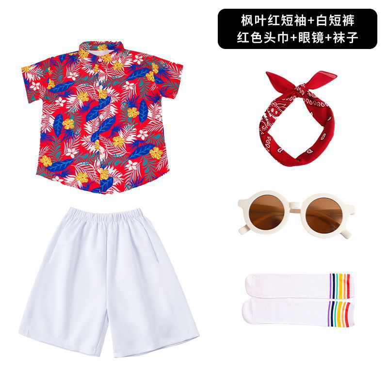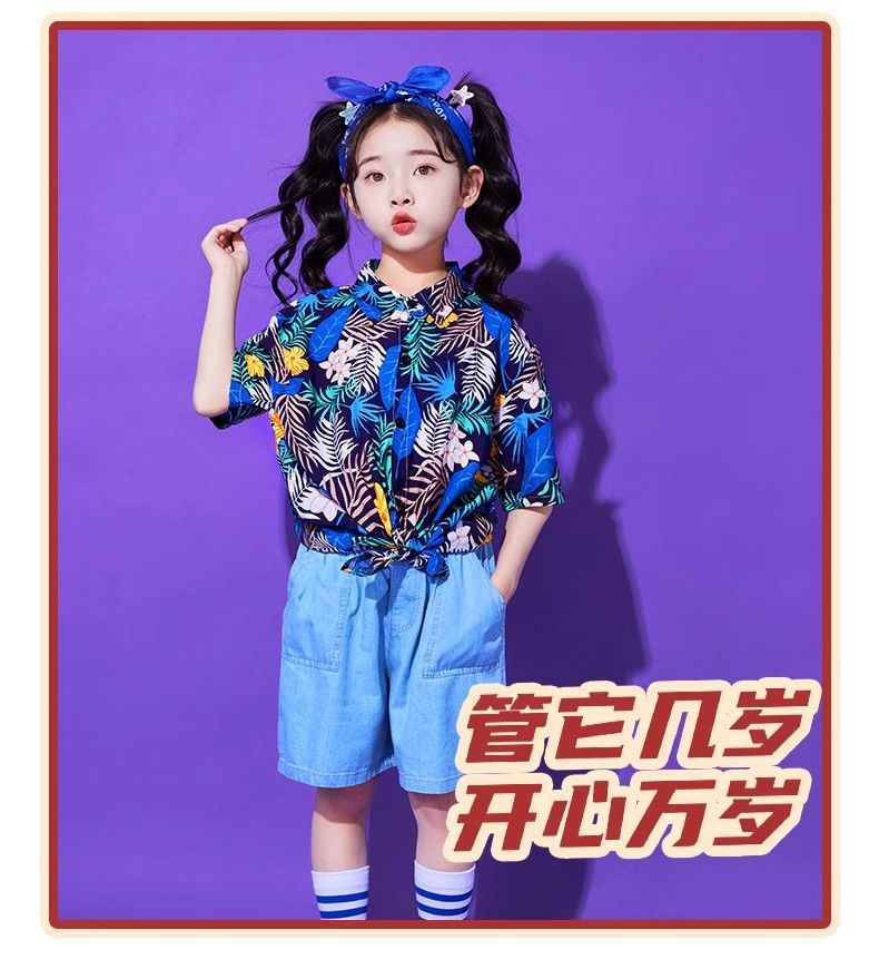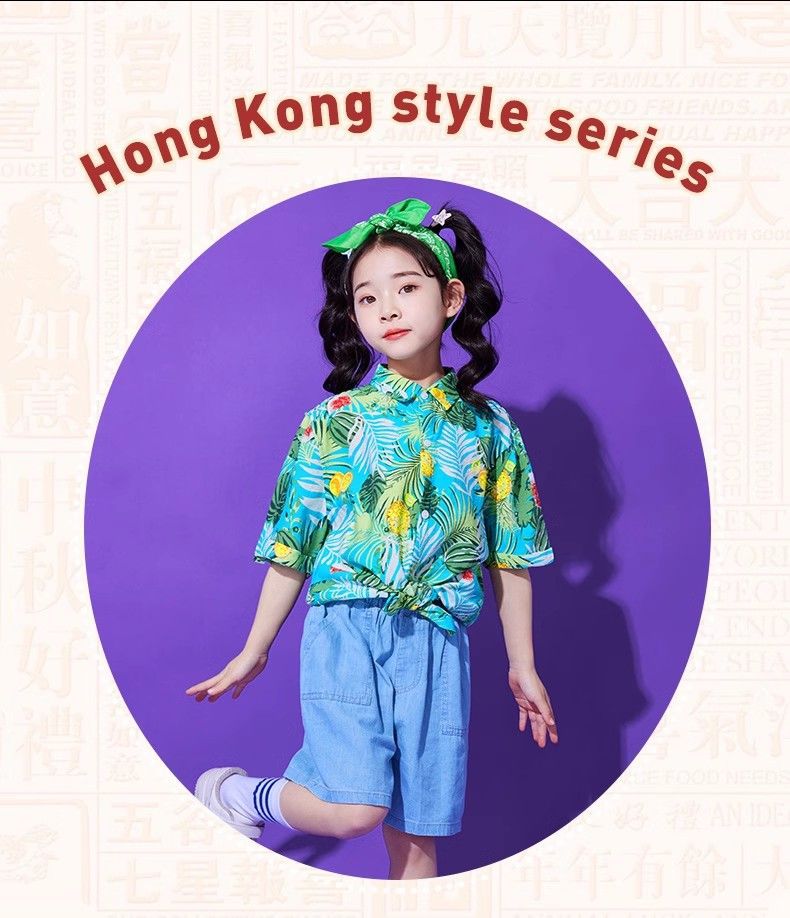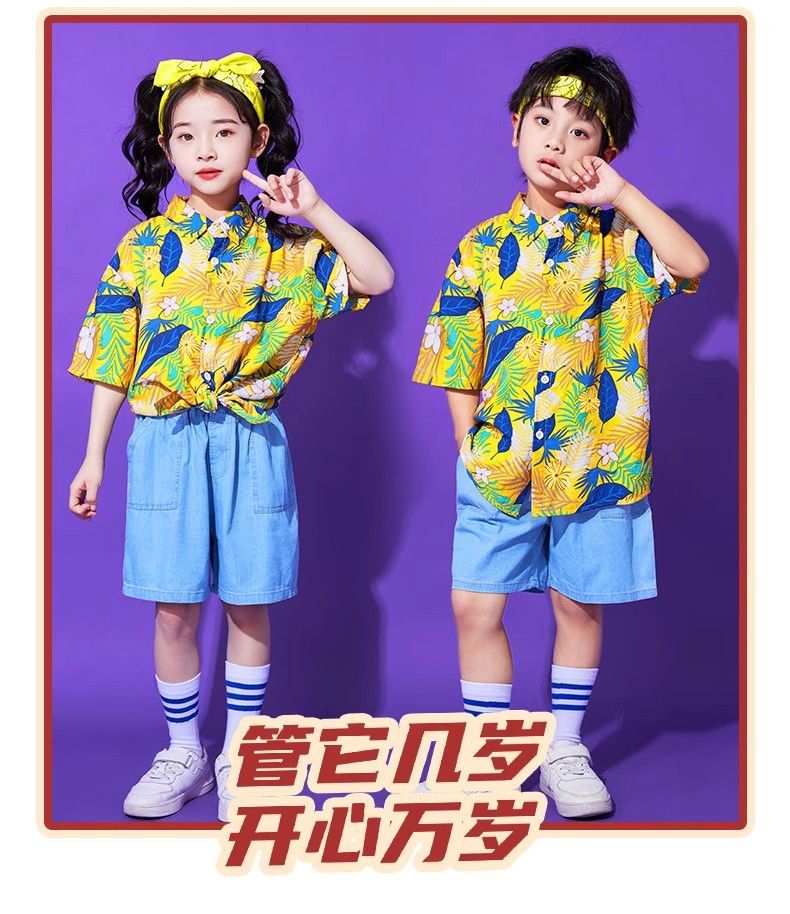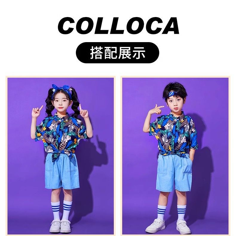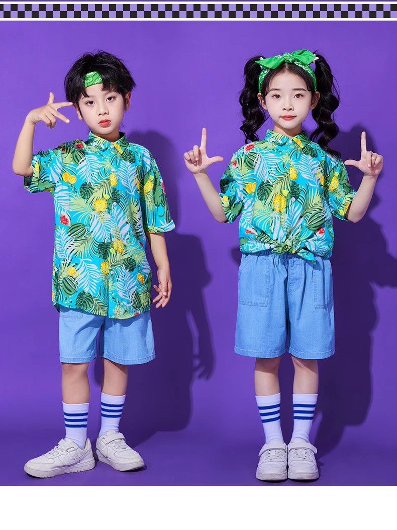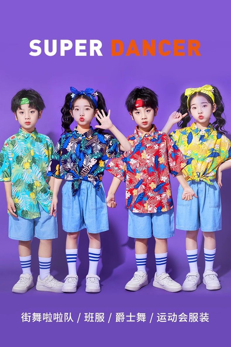 어린이 유치원 홍콩 스타일 공연 댄스 치어 리더 팀 운동 클래스 옷 복고풍 꽃 셔츠 초등학교 학생 게임