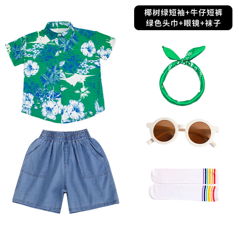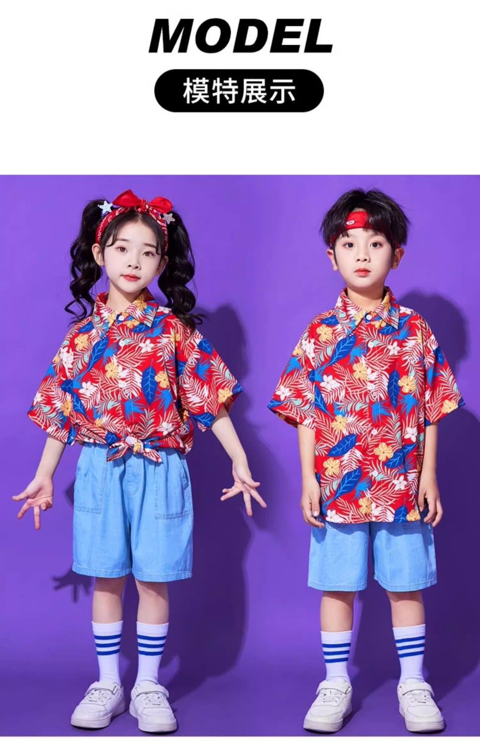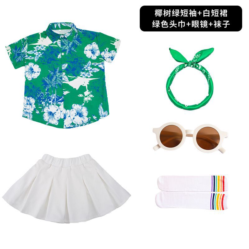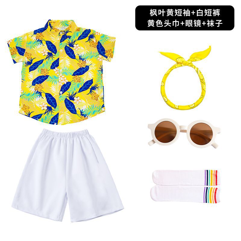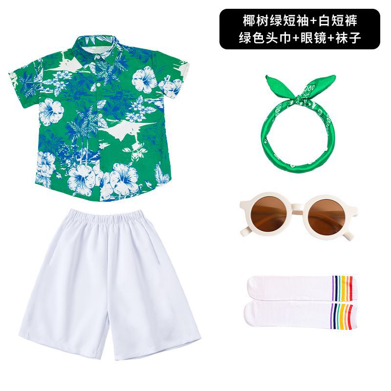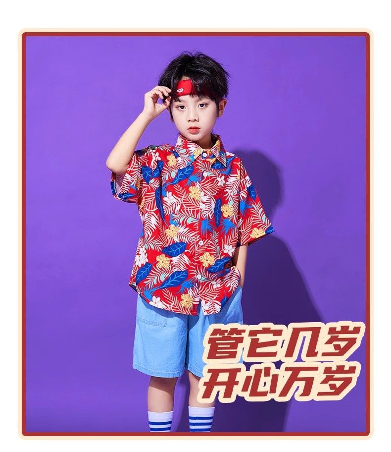 어린이 유치원 홍콩 스타일 공연 댄스 치어 리더 팀 운동 클래스 옷 복고풍 꽃 셔츠 초등학교 학생 게임