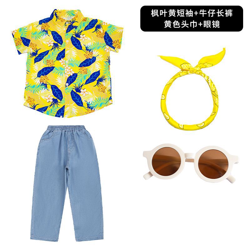 • 메이플 리프 옐로우 반팔 + 데님 반바지 + 옐로우 터번 안경 양말