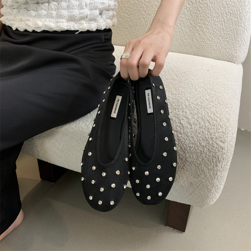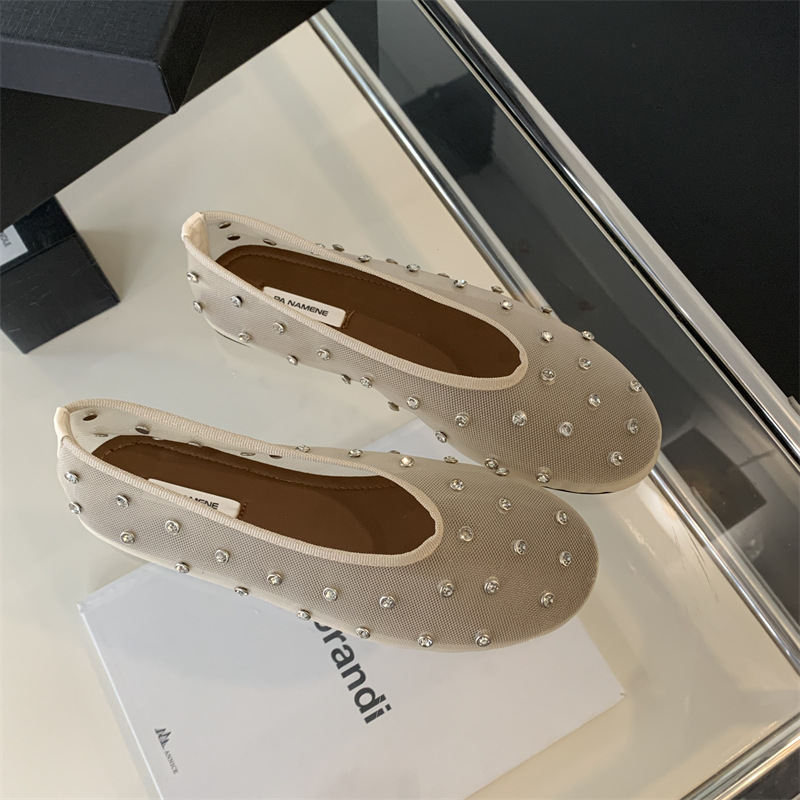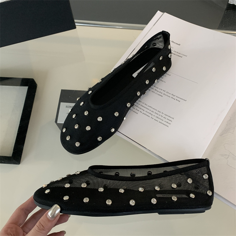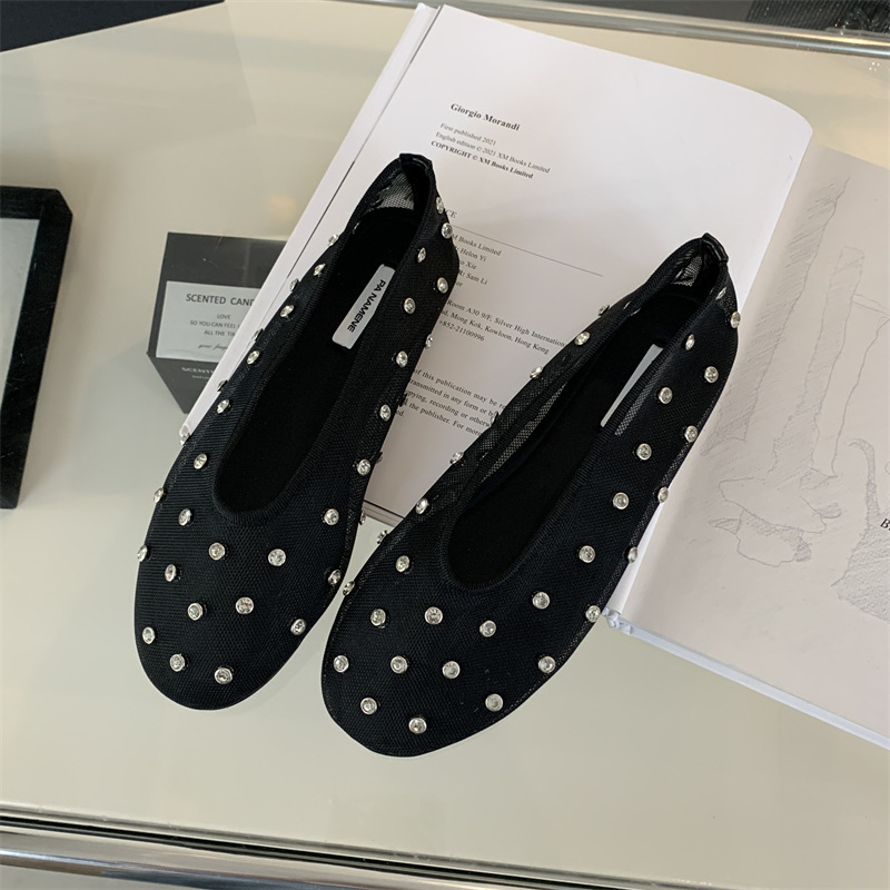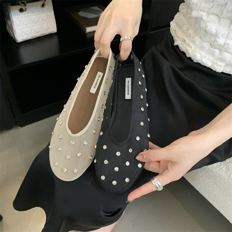 2024 봄과 가을 새로운 유행 라운드 헤드 라인 스톤 메리 제인 신발 여성 평면 편안한 발레 춤 신발