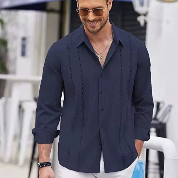 꽃 셔츠 패션 브랜드 유럽과 미국 스타일 스트라이프 긴 소매 셔츠 남성 캐주얼 Planky Handsome 느슨한 미국 스타일 레트로 대외 무역 탑스토어 가기