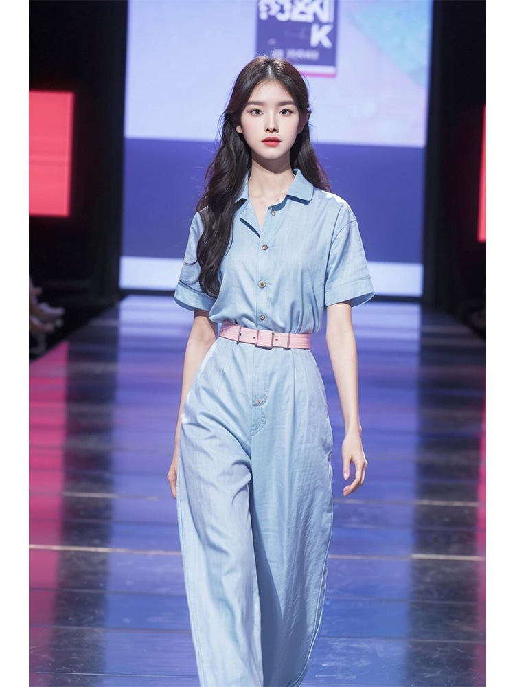 YT331548 세련된 하이 엔드 감각 슬리밍 기질 원피스 블루 점프 수트 2024 새로운 작은 하이 엔드스토어 가기