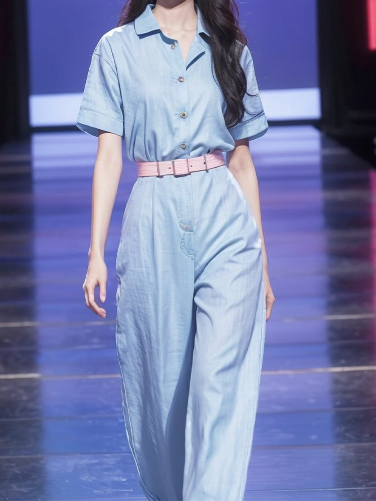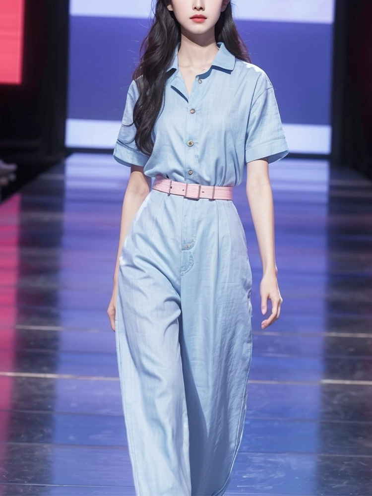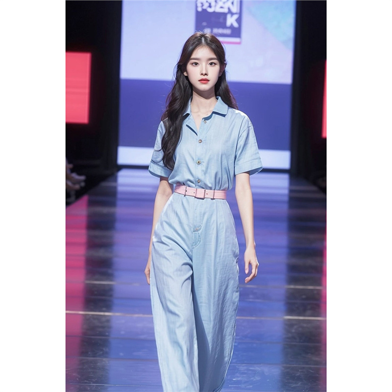 YT331548 세련된 하이 엔드 감각 슬리밍 기질 원피스 블루 점프 수트 2024 새로운 작은 하이 엔드