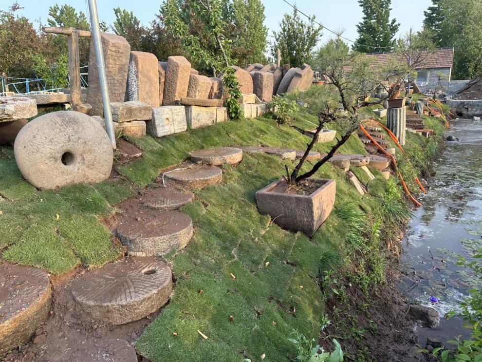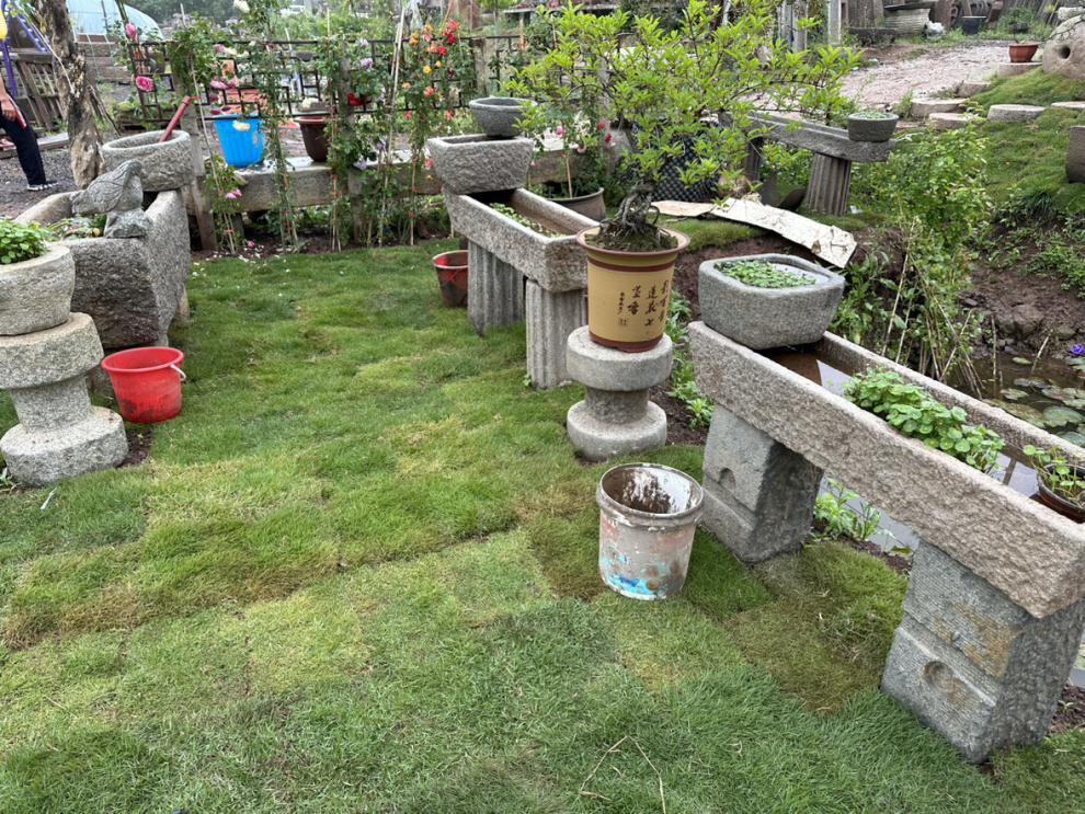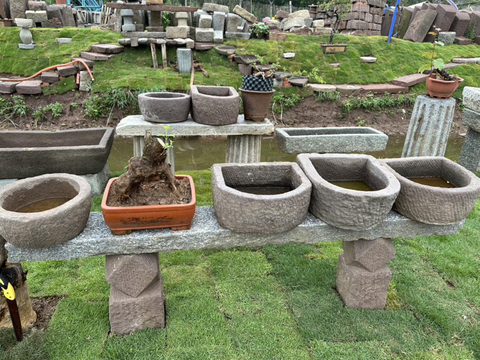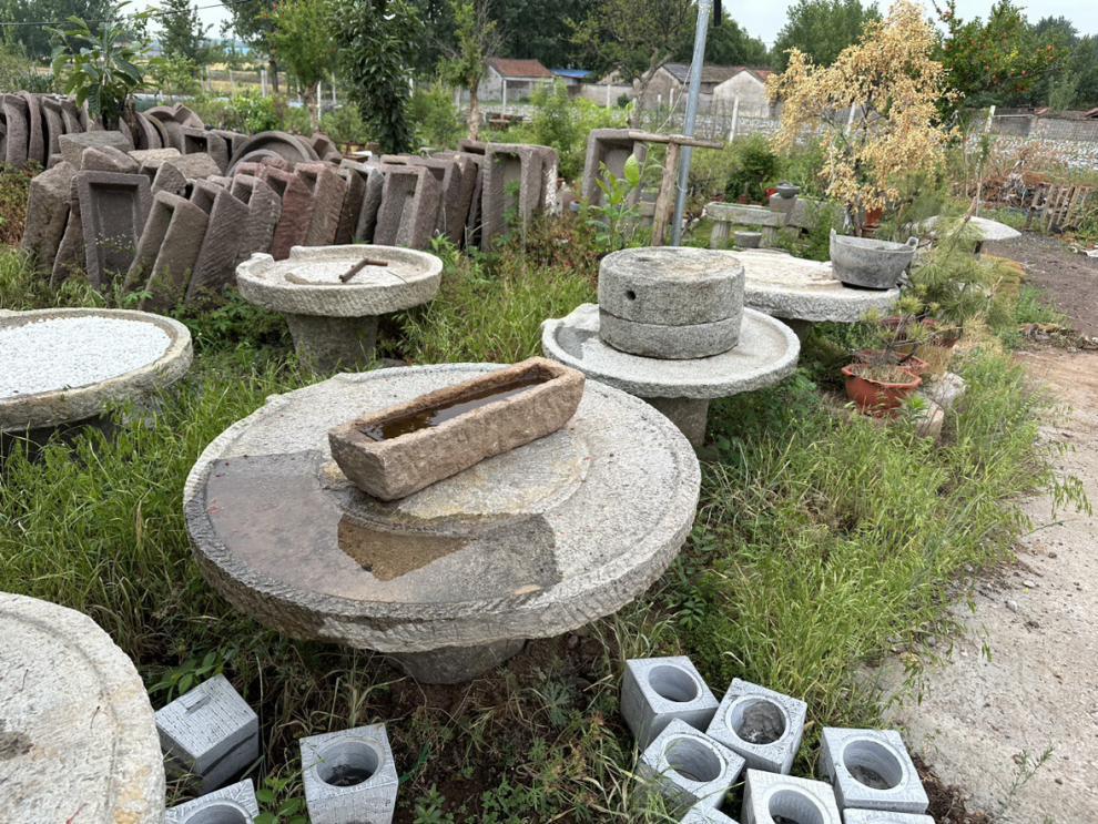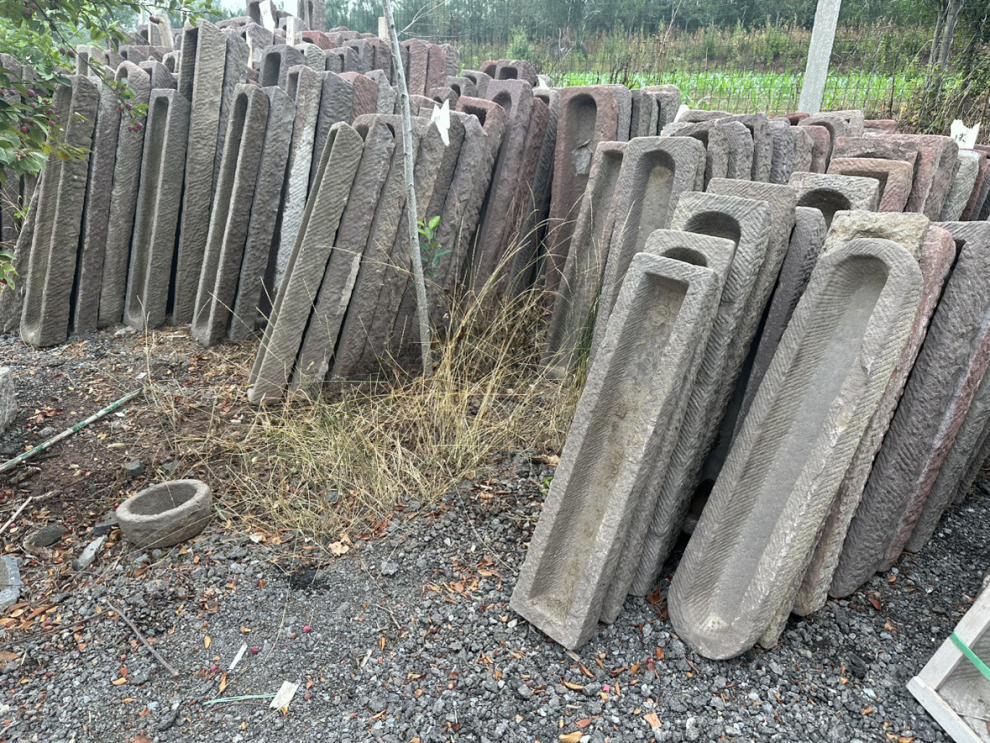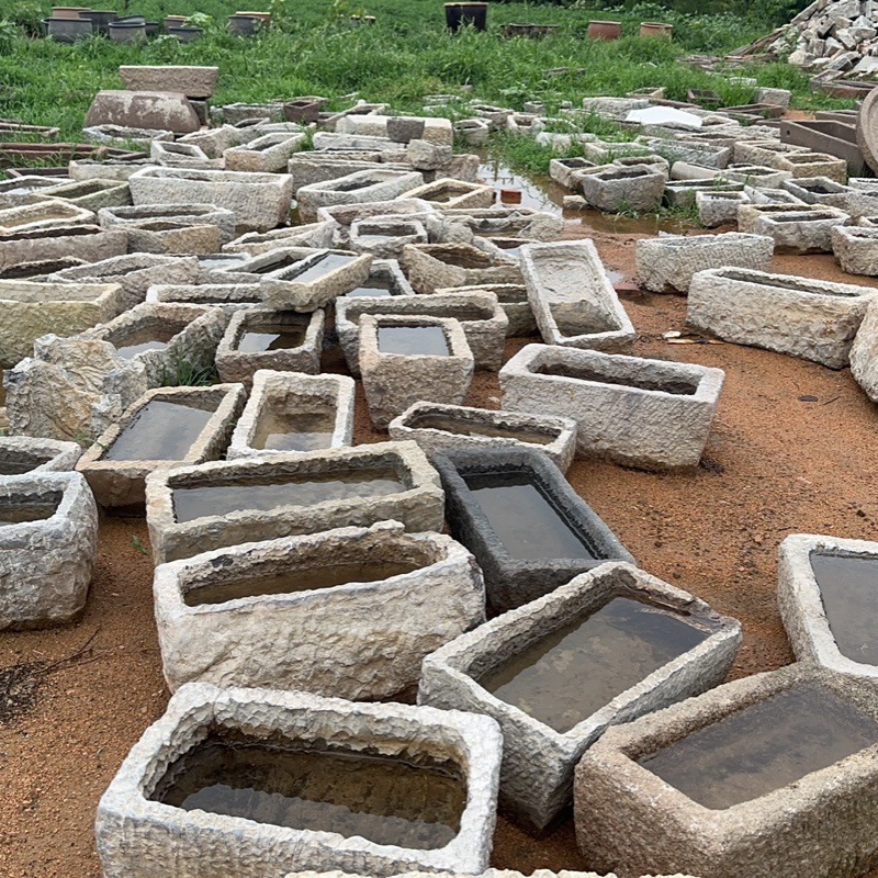 오래 된 돌 물통 물고기 탱크 돌 꽃 냄비 수련 흐르는 물 조합 민속 돼지 트로프 소 골짜기 구유 안뜰 장식스토어 가기