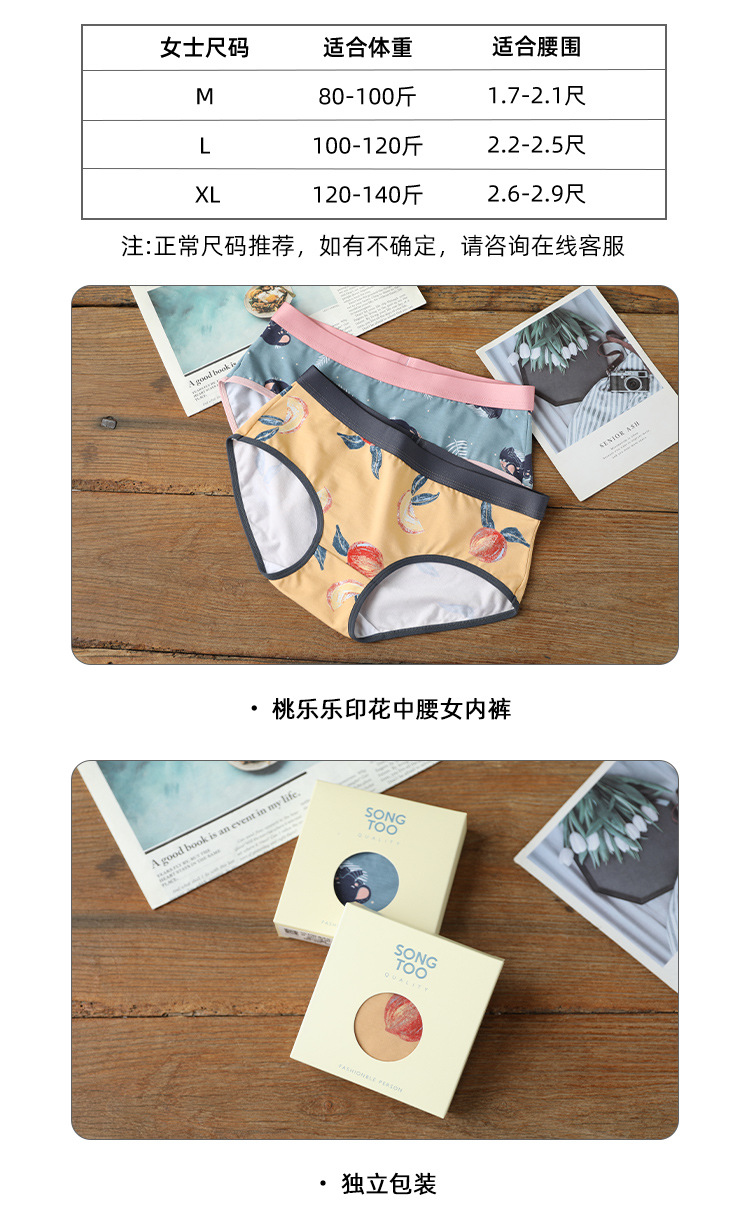 타오 Lele 창조적 인 재미있는 과일 인쇄 속옷 여성의 편안한 모달 코튼 중간 허리 엉덩이 삼각형 여성 반바지스토어 가기