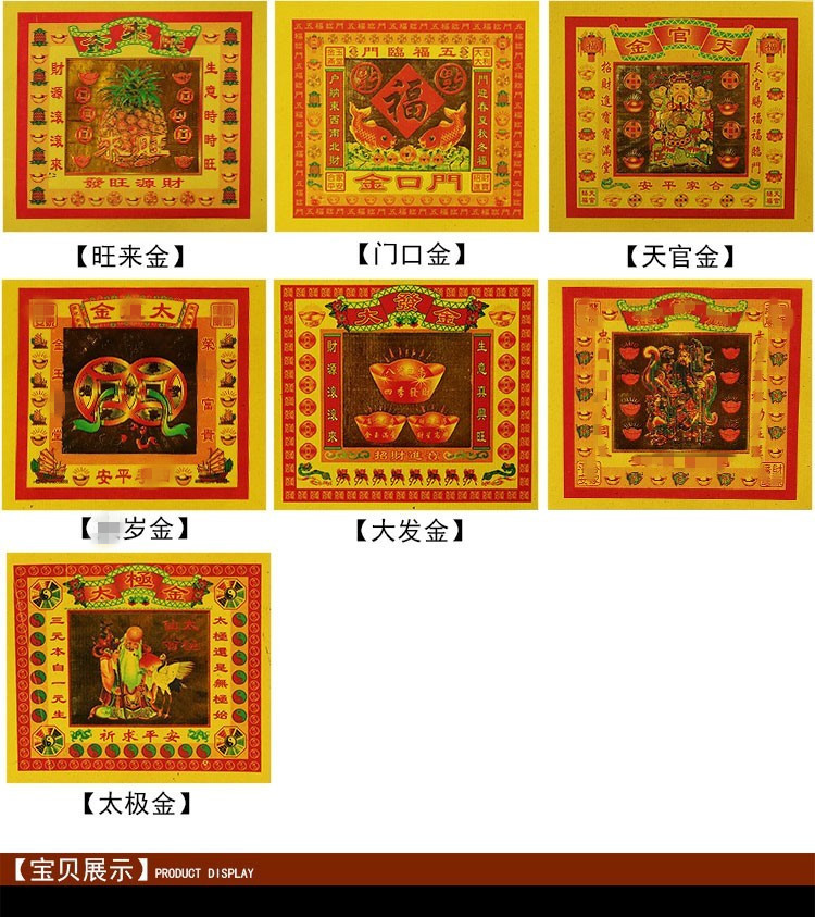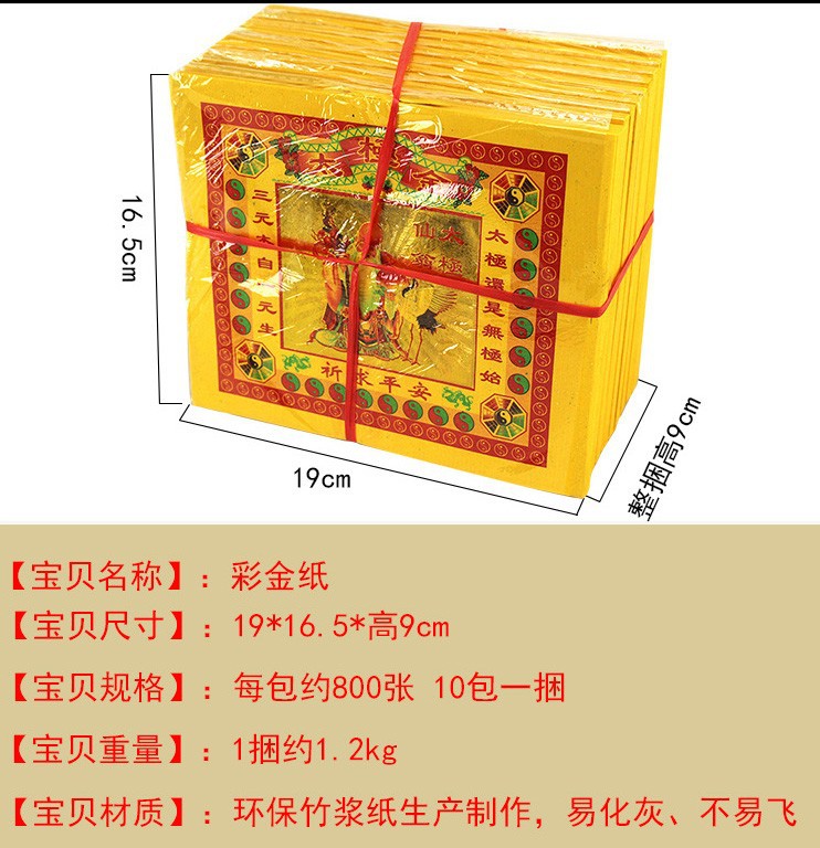노란 종이 불타는 종이 도매 8 인치 다채로운 금 종이 돈 자동차 공공 금 문 금 종이 다파 진왕 칭밍 축제 차오산스토어 가기