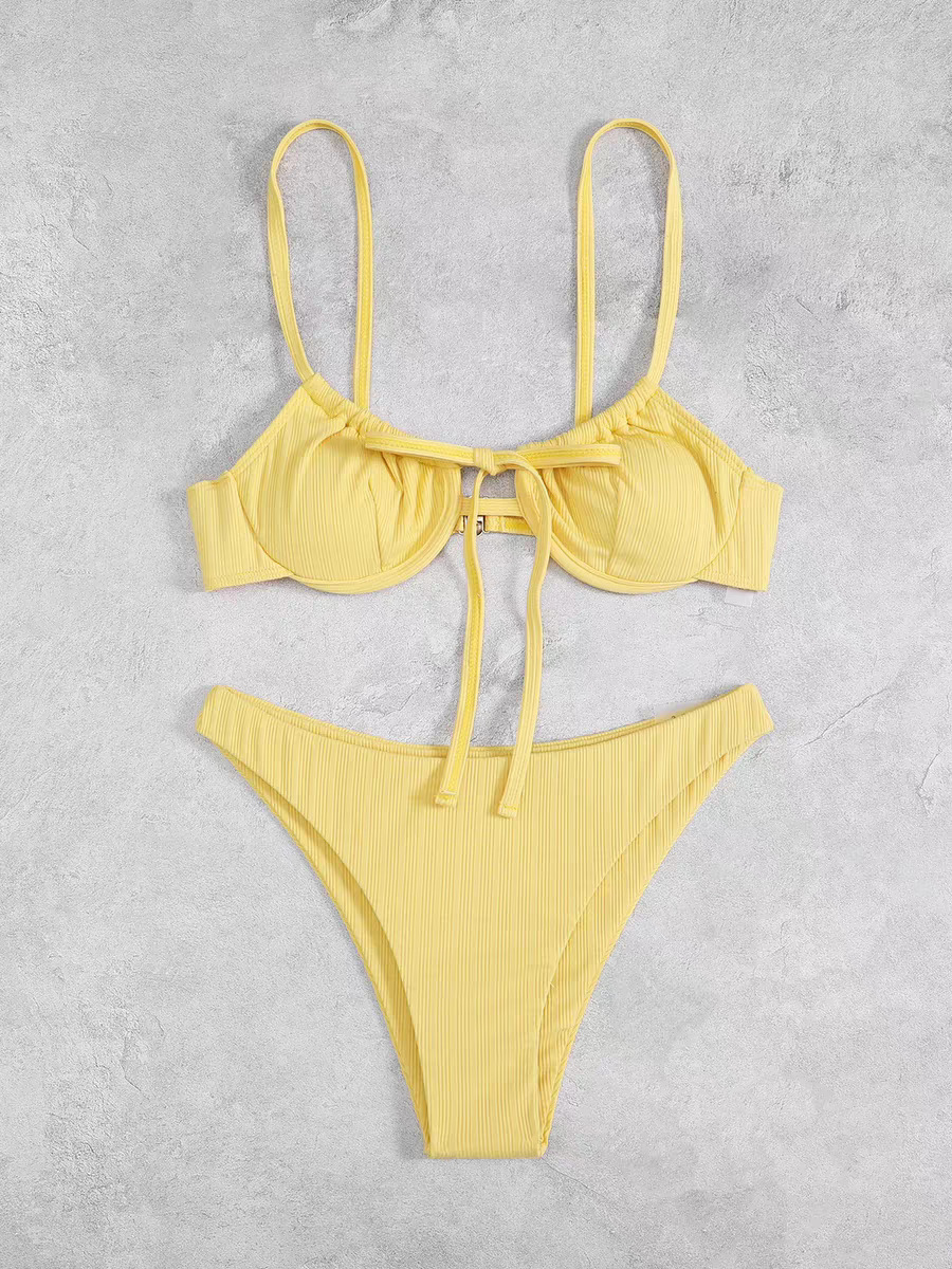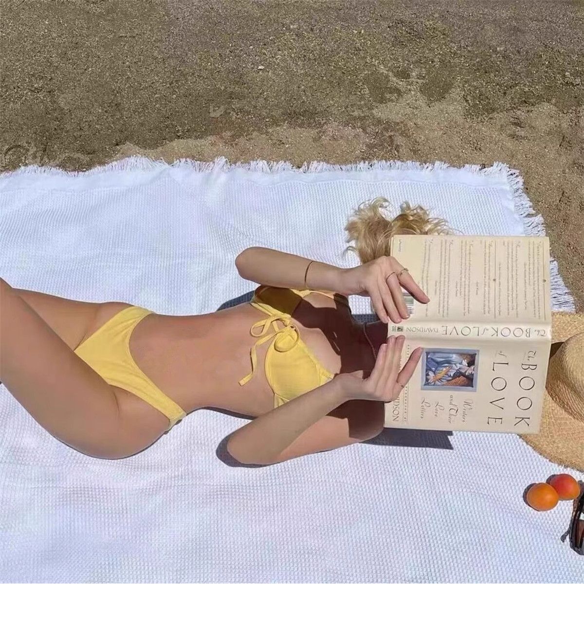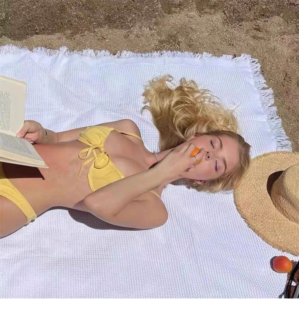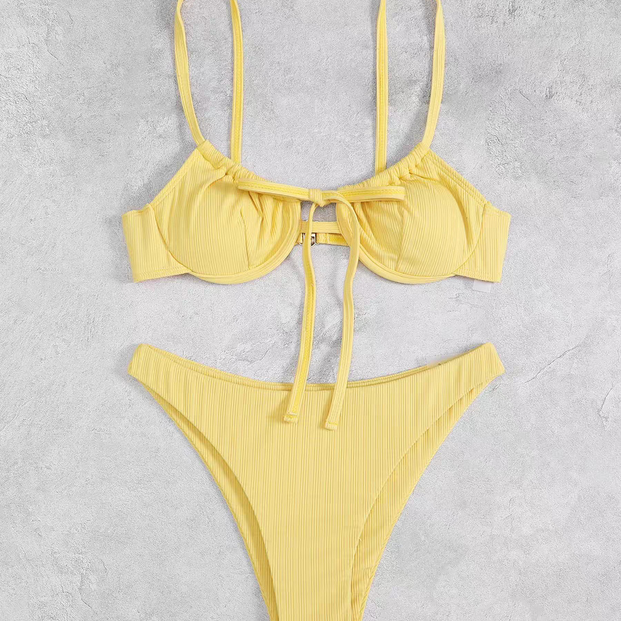 Ins Sexy Hot Girl 스타일 3 점 비키니 작은 가슴 스틸 Bracing 푸시 업 분할 옐로우 화이트 휴가 수영복 여성용