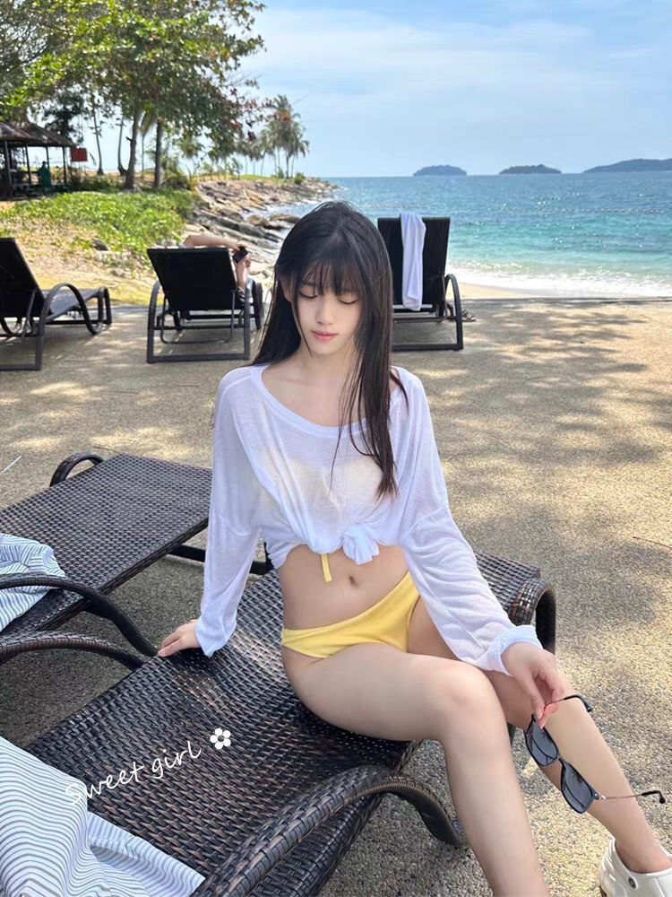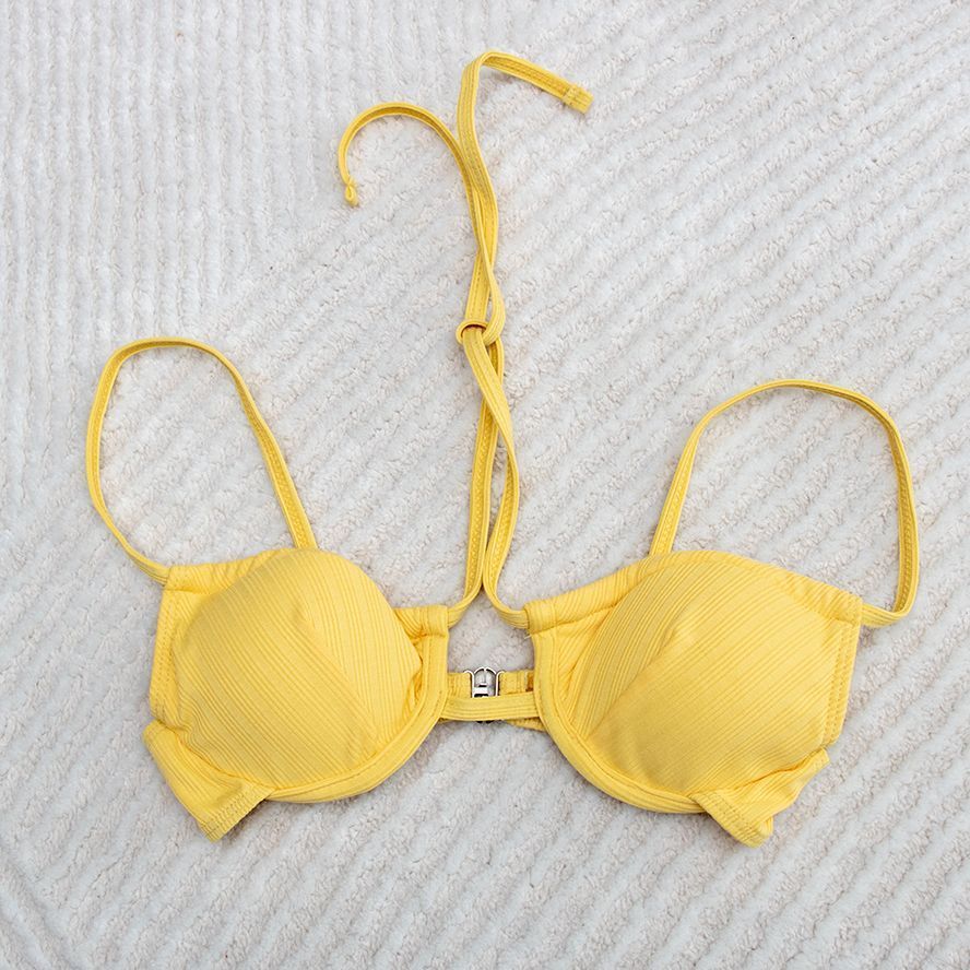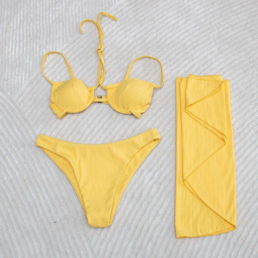Ins Sexy Hot Girl 스타일 3 점 비키니 작은 가슴 스틸 Bracing 푸시 업 분할 옐로우 화이트 휴가 수영복 여성용스토어 가기