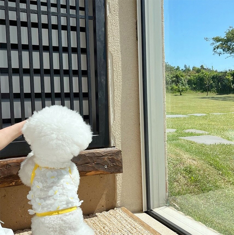 개 옷 봄과 여름 3 차원 나비 통기성 메쉬 웃는 슬링 얇은 중소 개 외출 애완 동물 옷