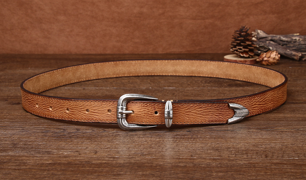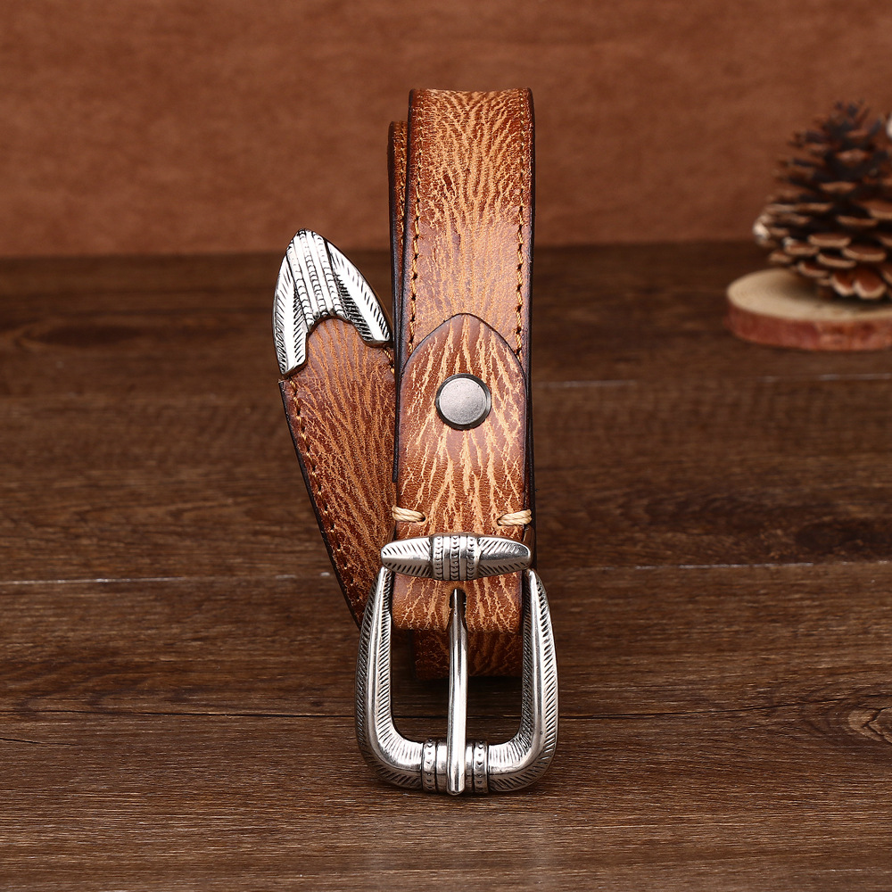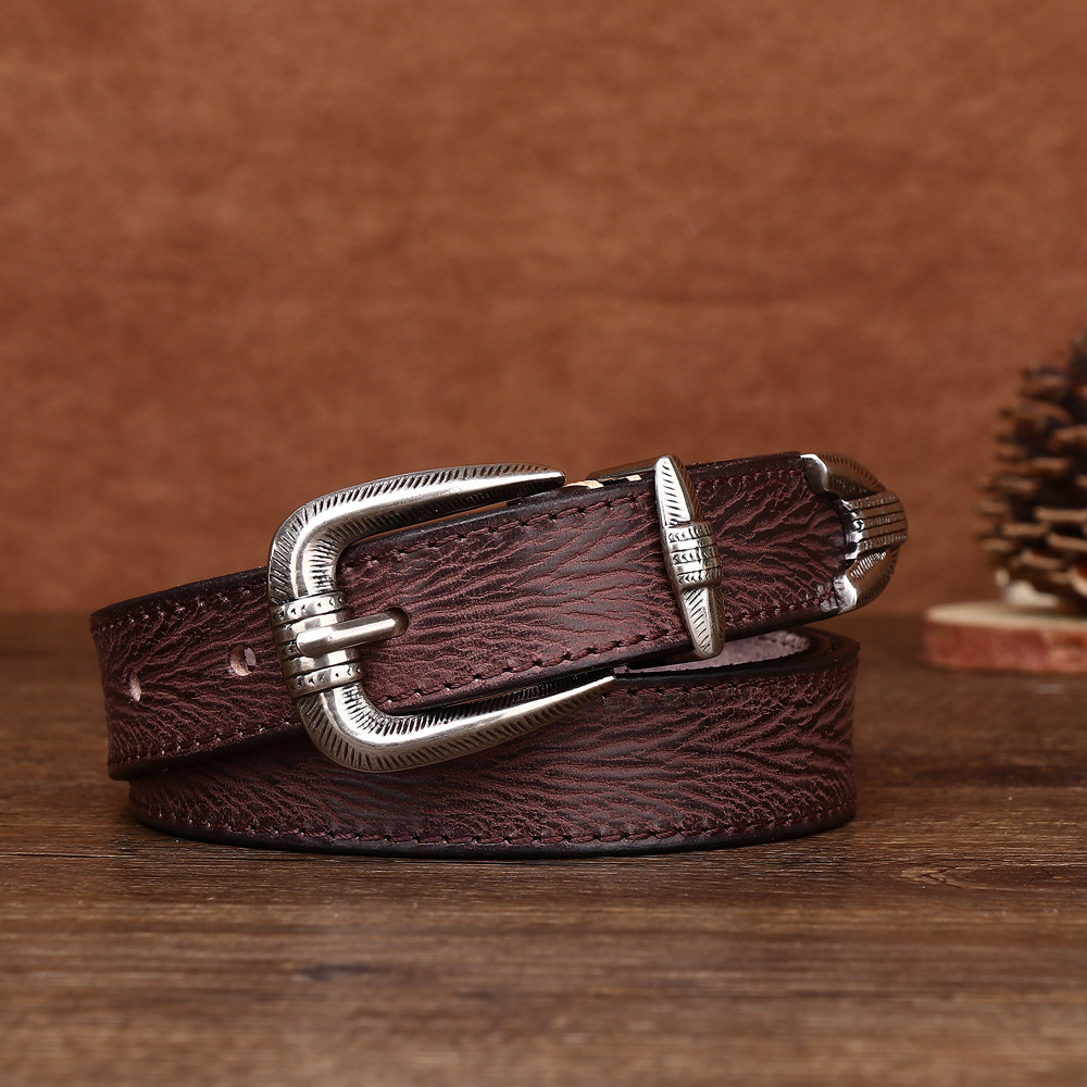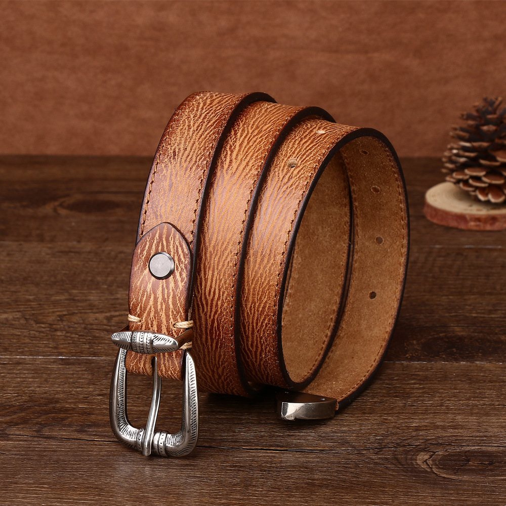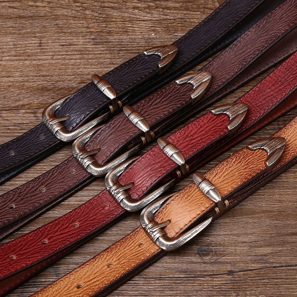 2.3CM 여성용 벨트 풀 패턴 탑 레이어 Cowhide 합금 핀 버클 캐주얼 레트로 올매치 바지 장식 벨트스토어 가기