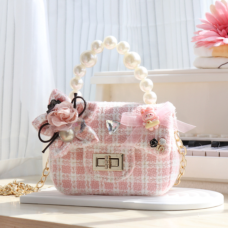 어린이 가방 유행 새로운 도착 2024 공주 샤넬 스타일 유행 크로스 바디 동전 지갑 하이 퀄리티 소녀의 세련된 작은 가방스토어 가기