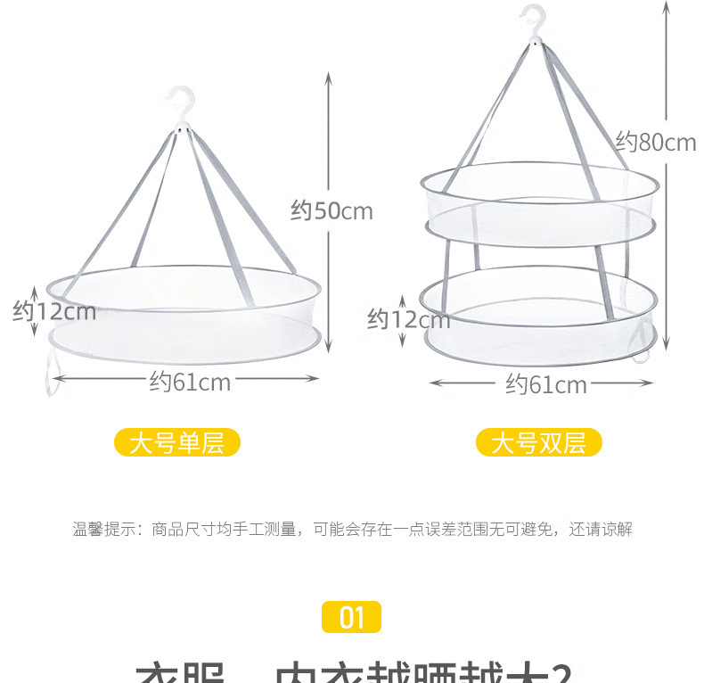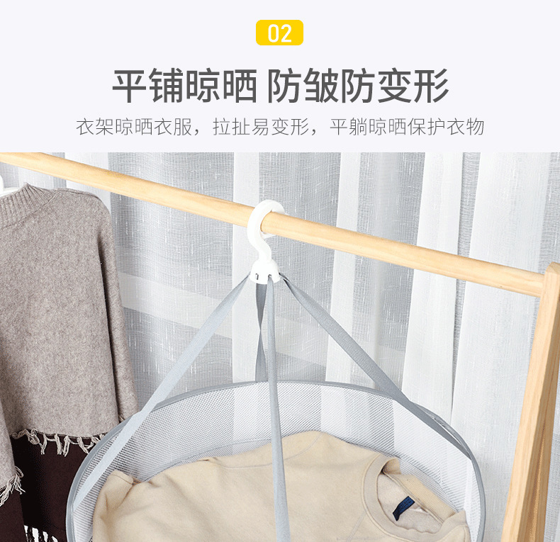 防风晒衣篮 可折叠便携式晒衣网防变形衣服平铺的网兜 晾袜子神器