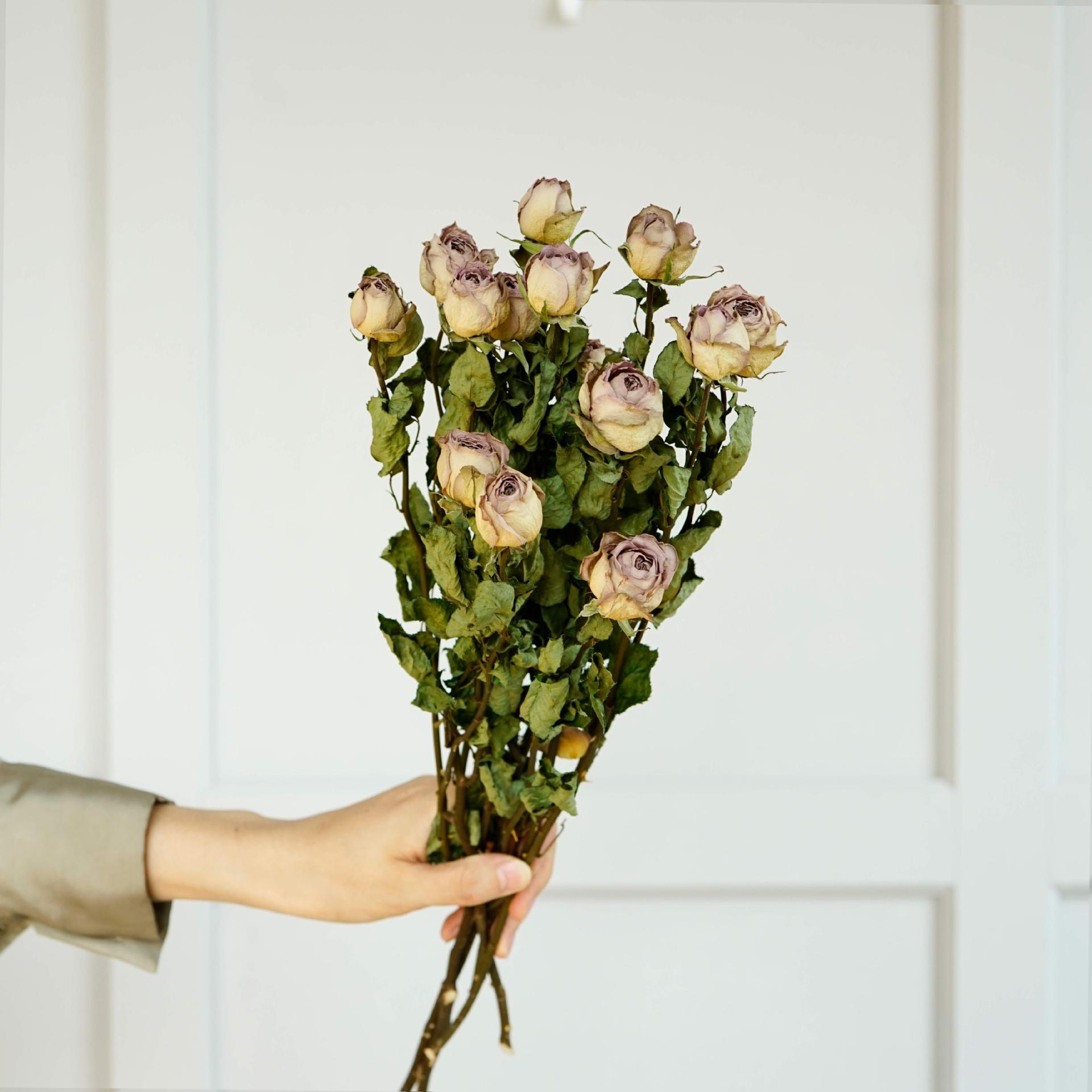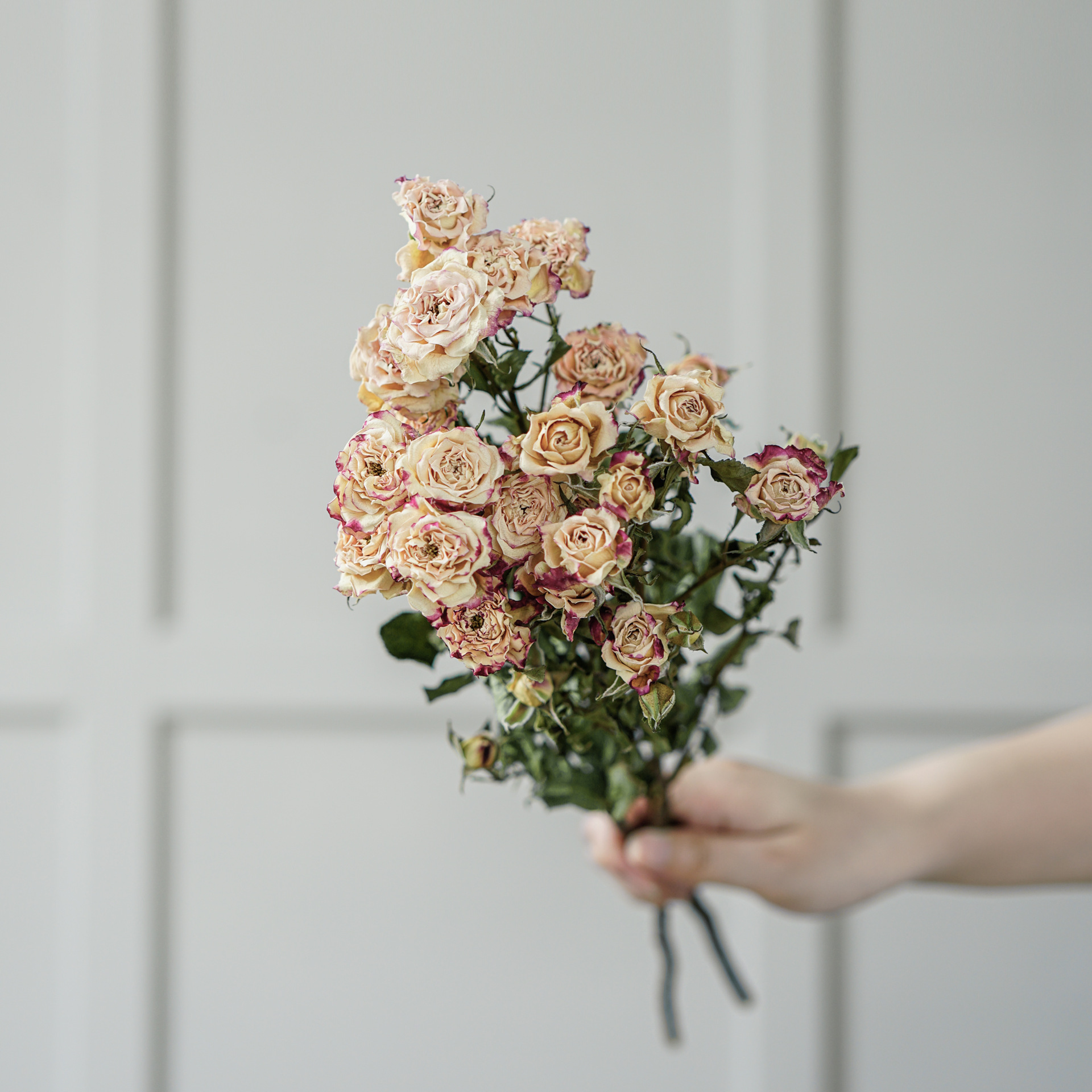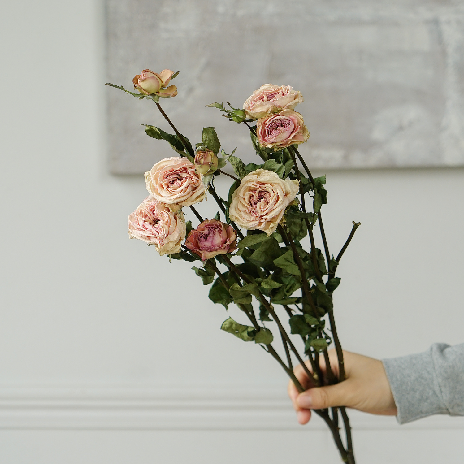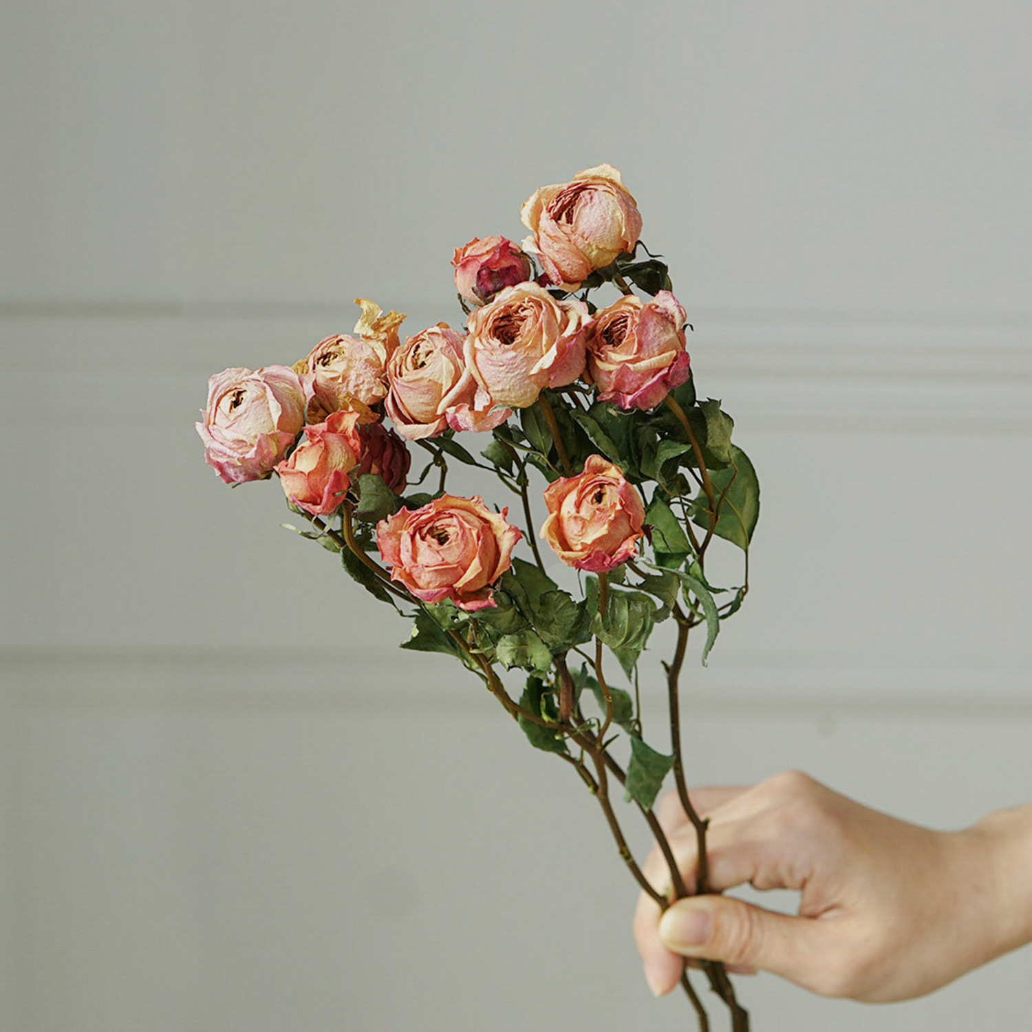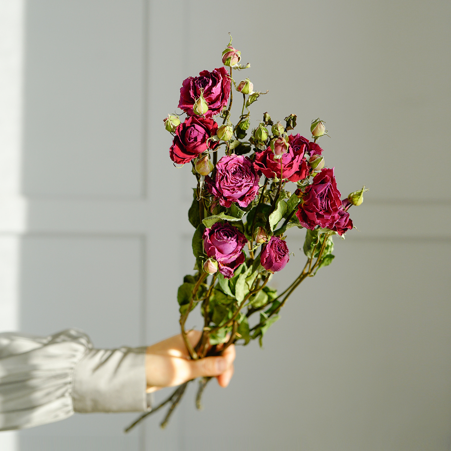 • 멀티헤드 장미 15개 랜덤 믹스 앤 매치, 무료 포장지 대량배송 - 드라이플라워백