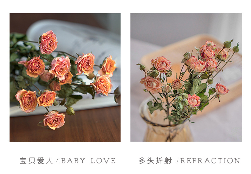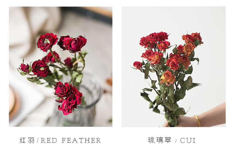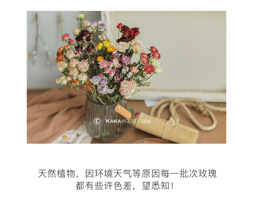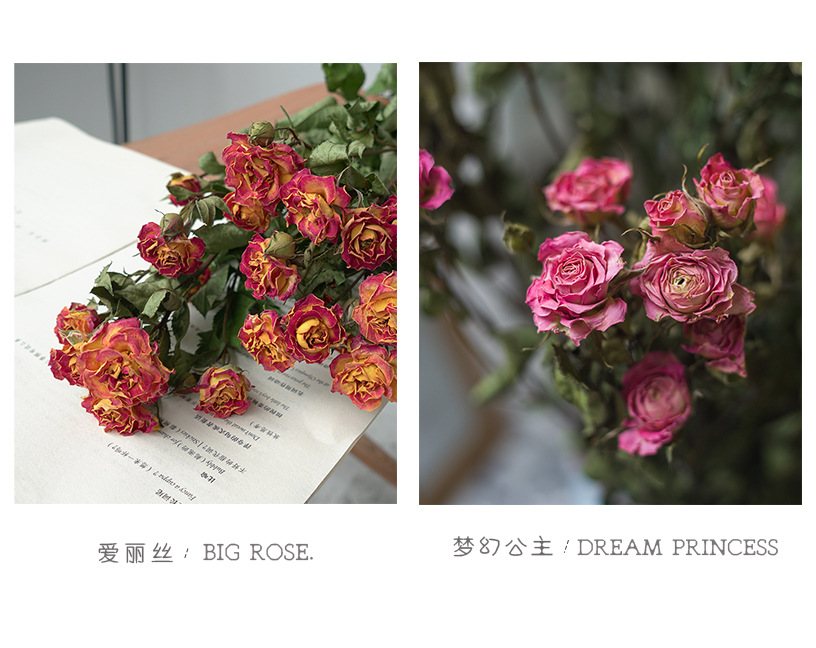 • 머리가 여러 개인 작은 장미, 말린 꽃은 운송 중에 약간의 정상적인 손실이 발생하고 꽃 머리는 상대적으로 매듭이 있습니다.