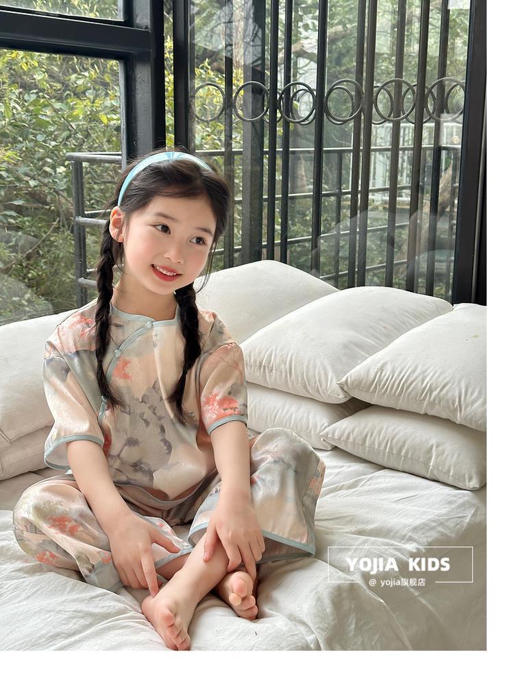어린이 의류 소녀 국가 스타일 잠옷 세트 여름 한푸 새로운 중국 에어컨 의류 어린이 아이스 실크 홈 의류 여름 패션스토어 가기